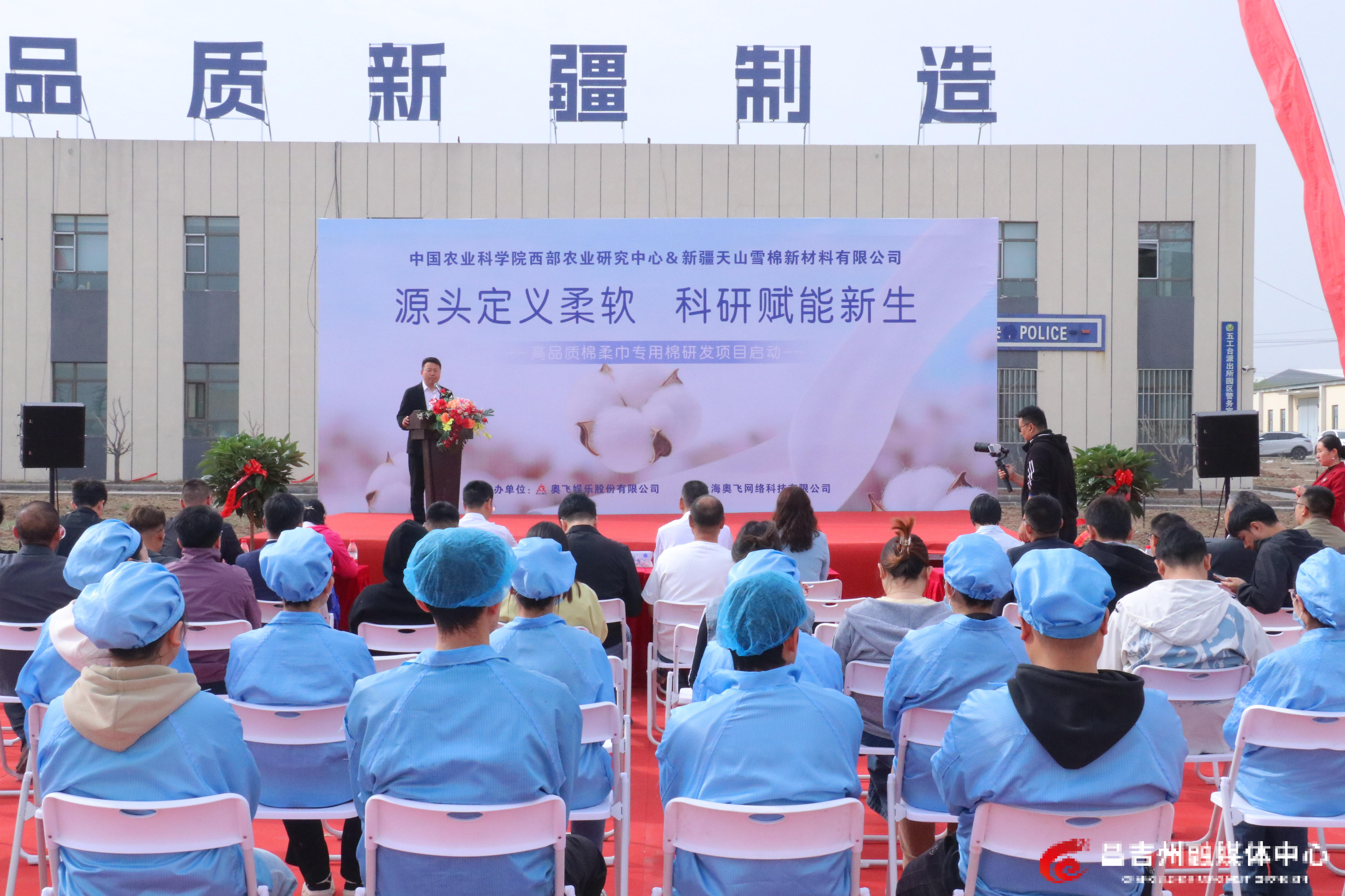 4月10日,中国农业科学院西部农业研究中心与新疆天山雪棉新材料有限公司签约揭牌仪式现场。记者刘鑫承 摄