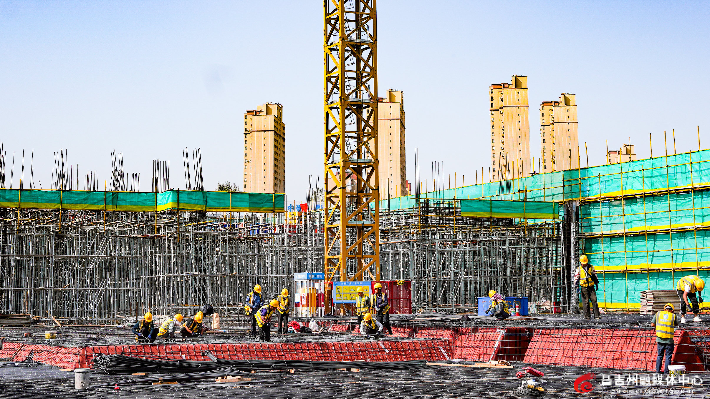 9月30日,新疆华美胜地昌吉金普顿酒店集群项目现场,工人正在忙碌施工。记者常谊谊 摄