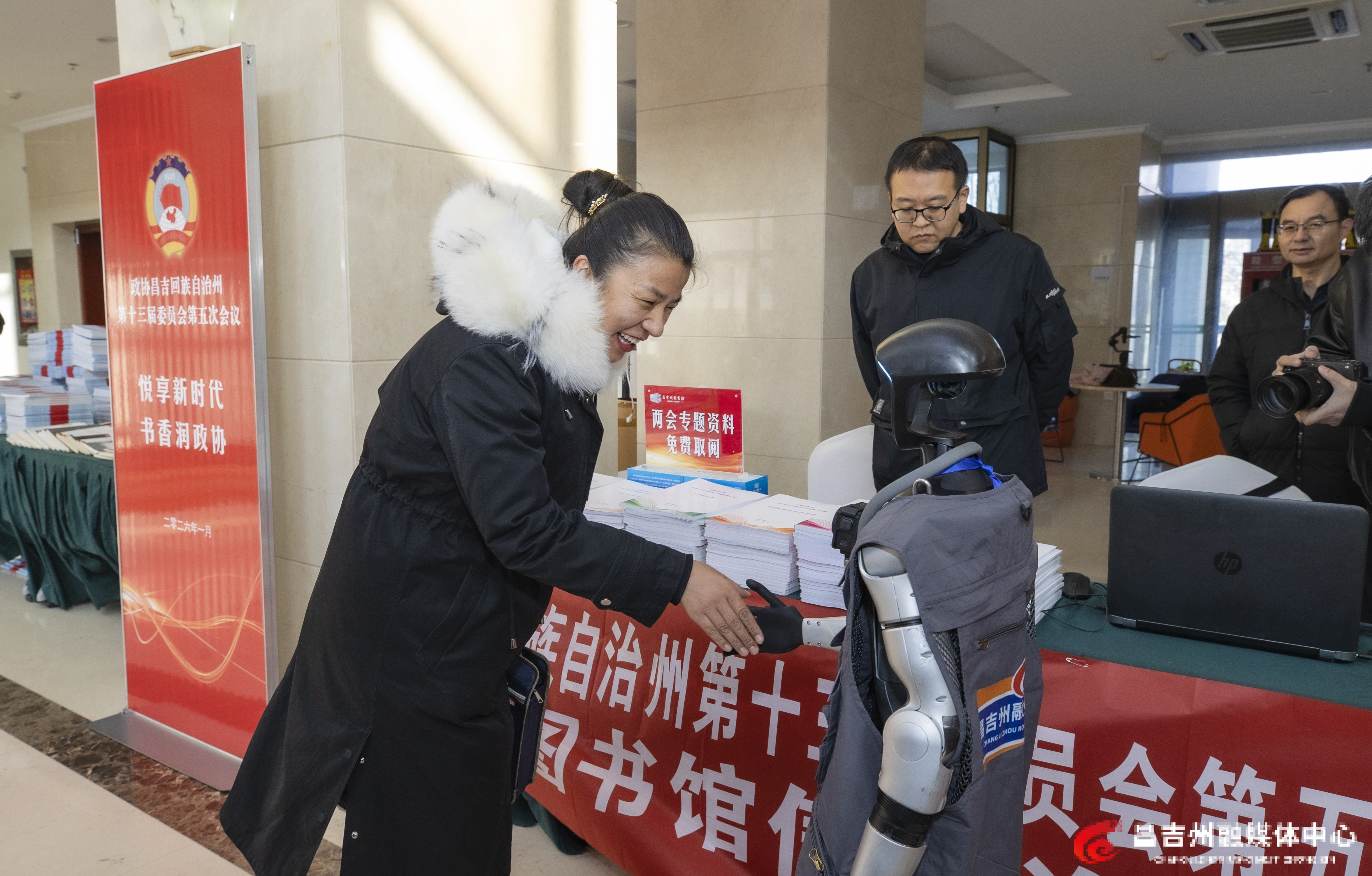 1月18日,出席昌吉州政协十三届五次会议的政协委员在报到处的两会专题资料免费借阅处借阅资料。