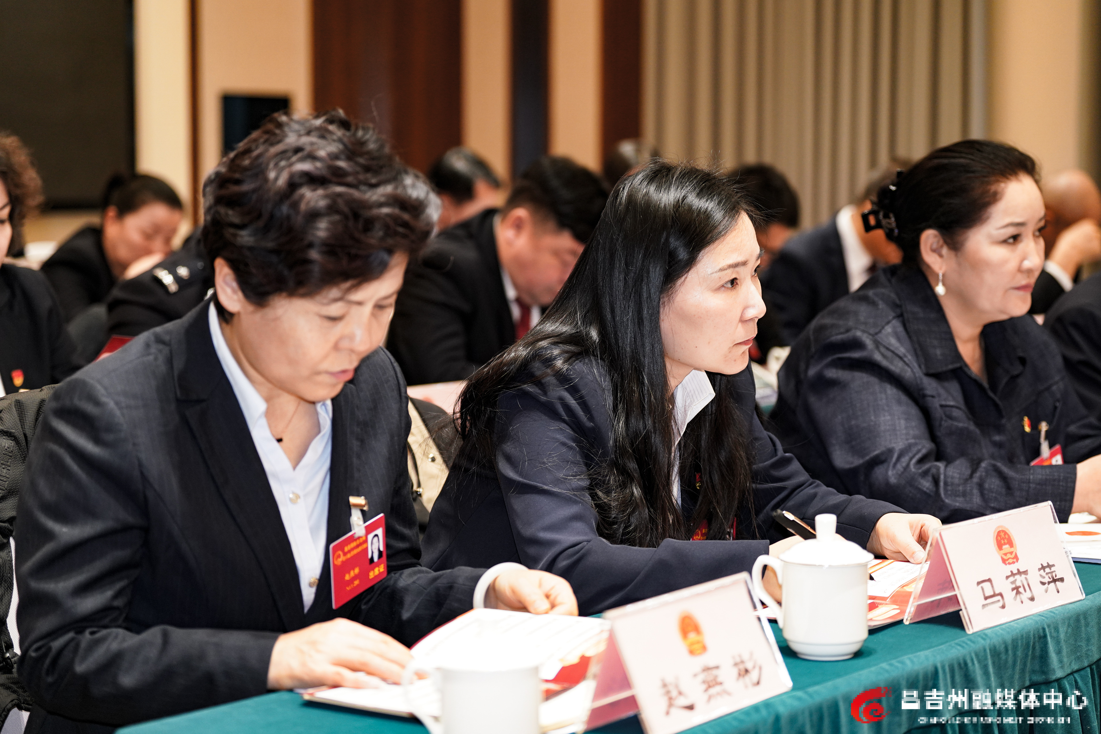 1月22日,在昌吉州十六届人大六次会议上,昌吉市代表团的代表在审议自治州人大常委会工作报告。