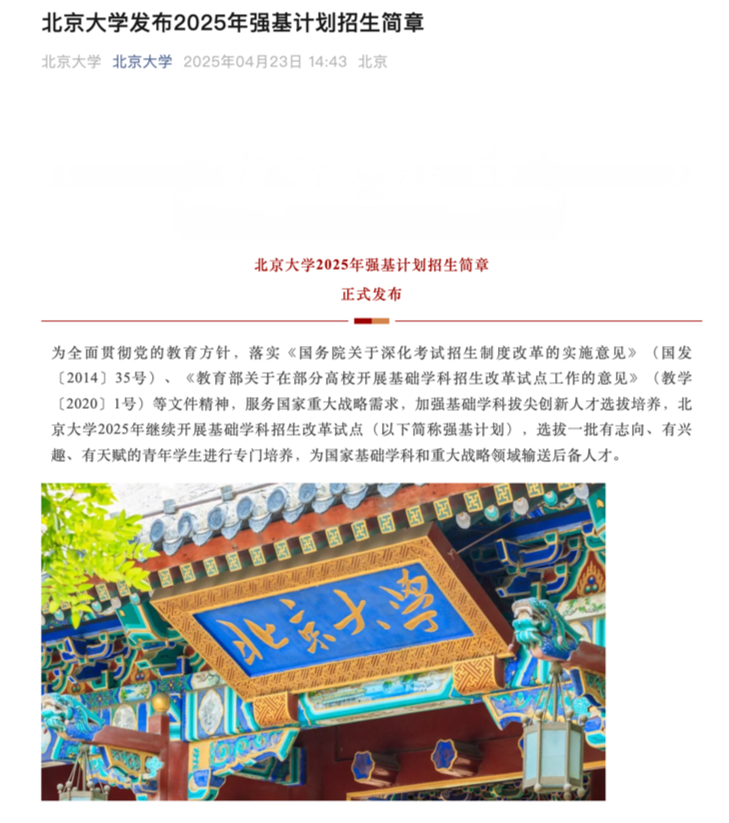 清华、北大发布2025年强基计划招生简章