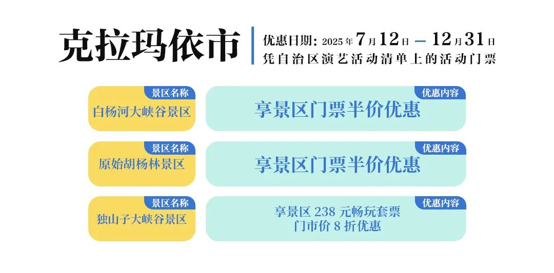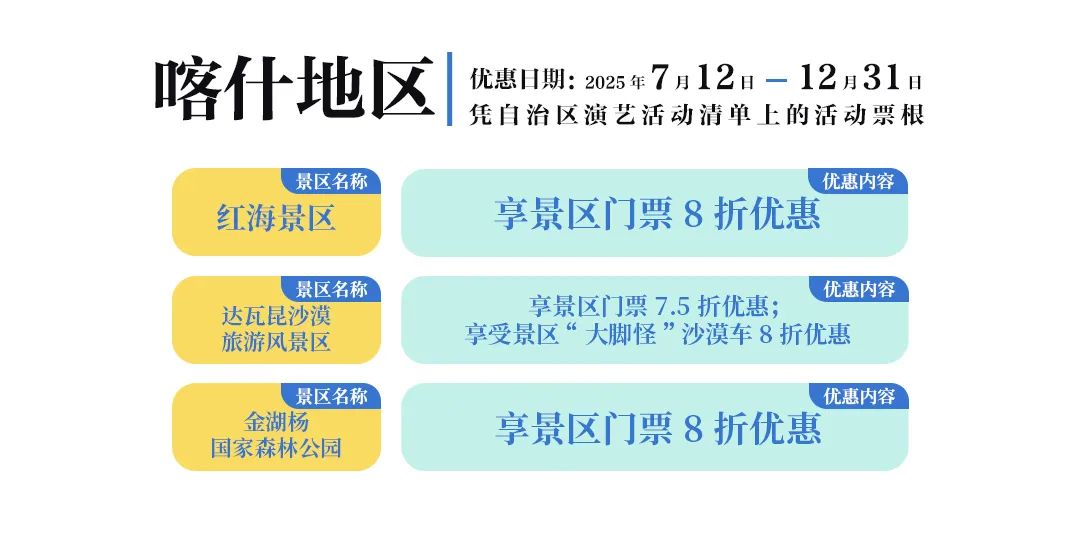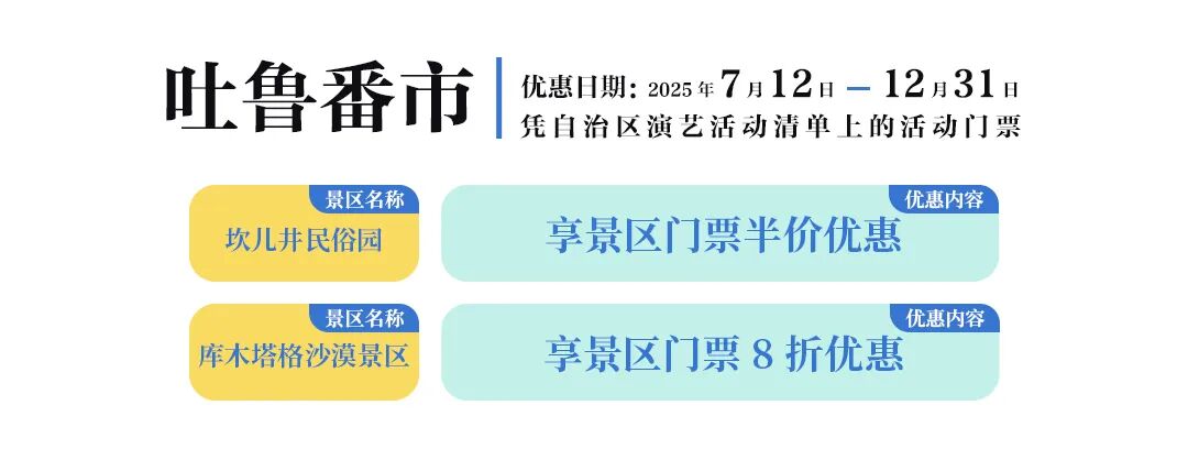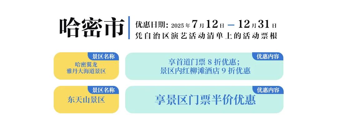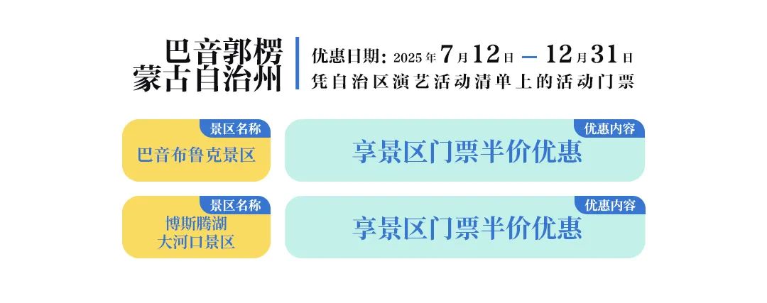🥳爱看演出的宝子们有福了!依托自治区下半年即将举办的各类大型演艺活动,自治区文化和旅游厅、自治区商务厅整合“景区门票、线路产品、酒店住宿、特色餐饮、购物中心”等优惠,推出380余项涵盖全区“吃住行游购娱”的一揽子优惠大礼包,全方位满足观众多元化消费需求。