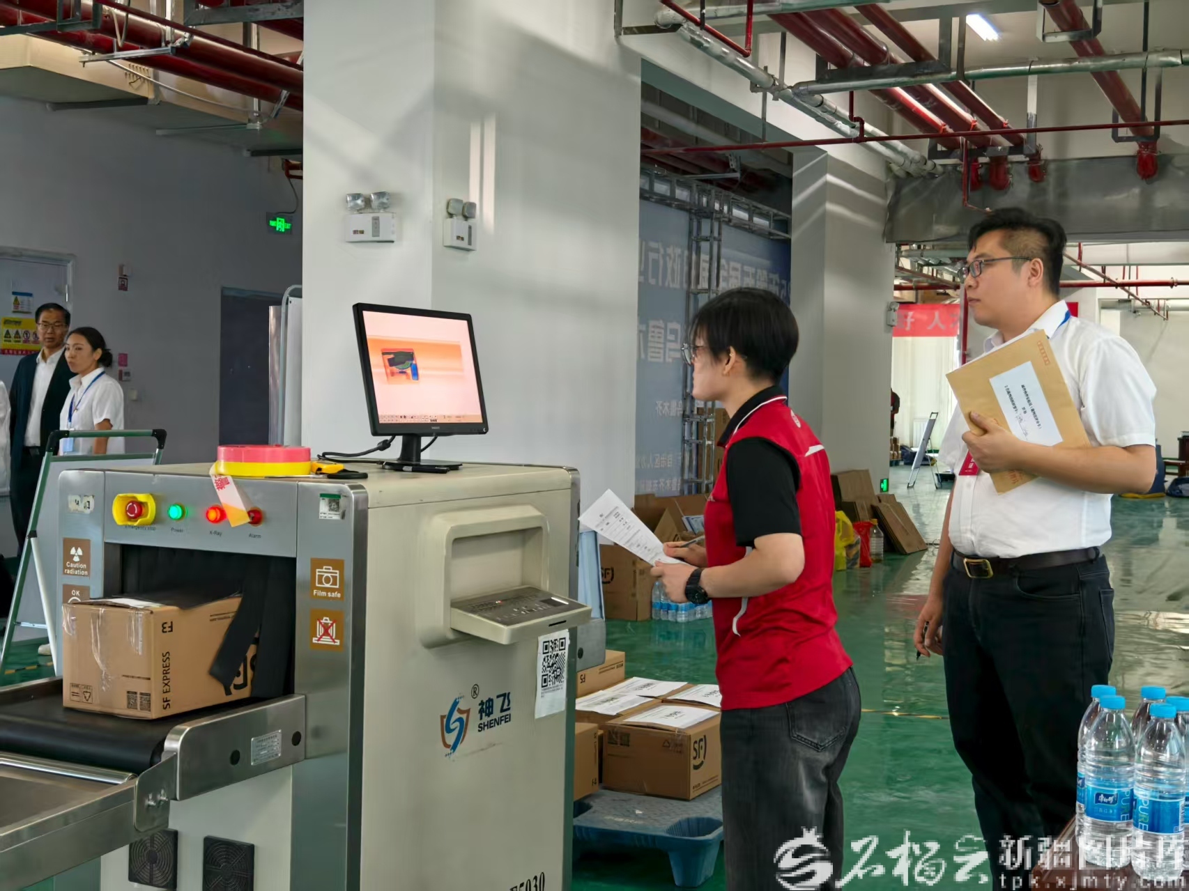 选手通过安检图像甄别快递物品。石榴云/新疆日报记者 范琼燕摄