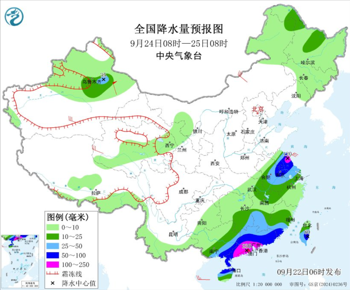 9月24日8时—25日8时全国降水量预报图。图/中国天气网