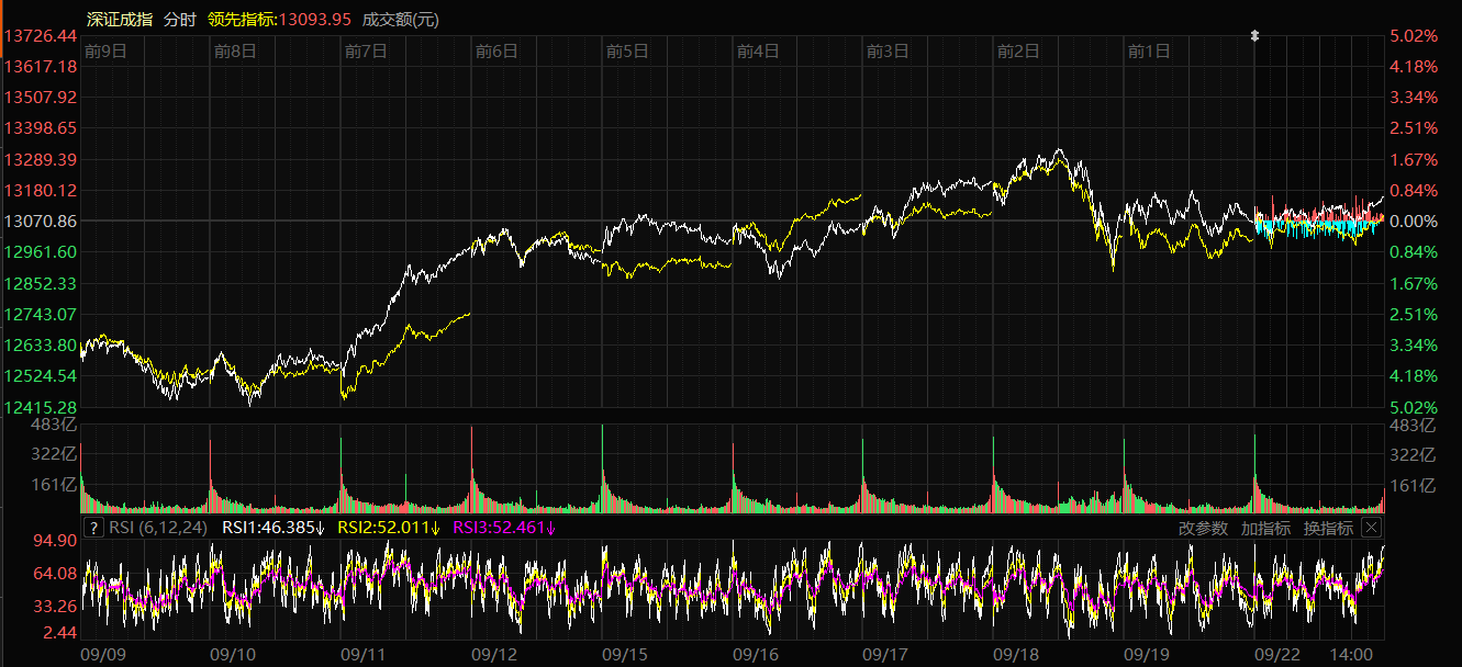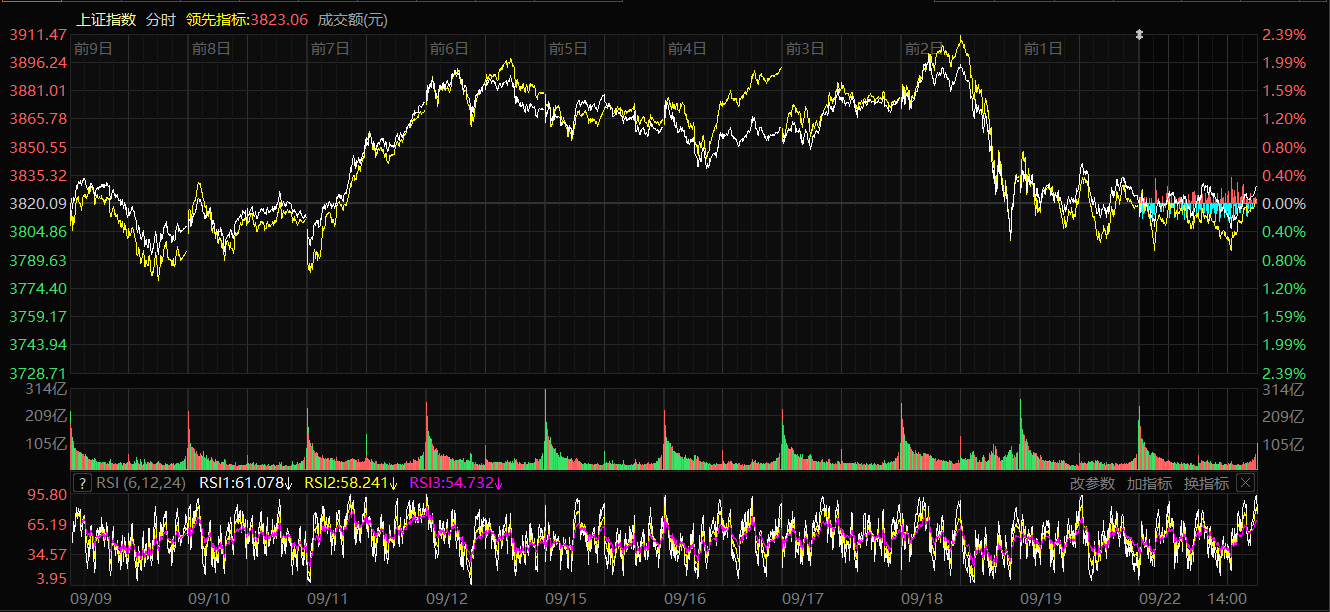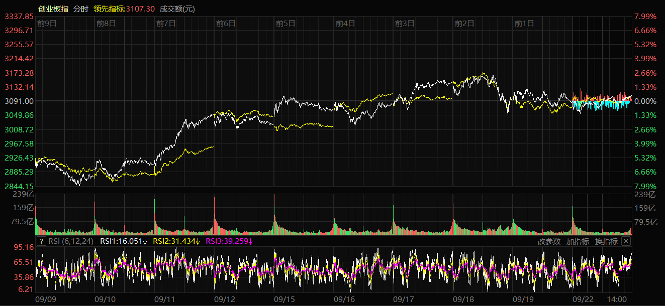 A+ A. A-石榴云/新疆日报讯(记者 赵悦报道)9月22日,A股三大指数集体上涨。截至收盘,上证指数涨0.22%,报收3828.58点;深证成指涨0.67%,报收13157.97点;创业板指涨0.55%,报收3107.89点。科创50指数涨3.38%,报收1408.64点。沪深两市成交额达21215亿元,较上个交易日缩量2023亿元。