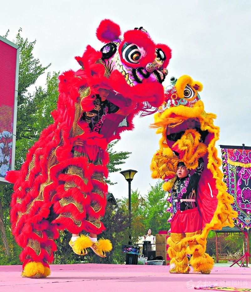 9月23日,为庆祝自治区成立70周年、欢庆“中国农民丰收节”,和布克赛尔蒙古自治县查和特乡举行了一系列活动。图为群众进行舞狮表演。□何承强摄