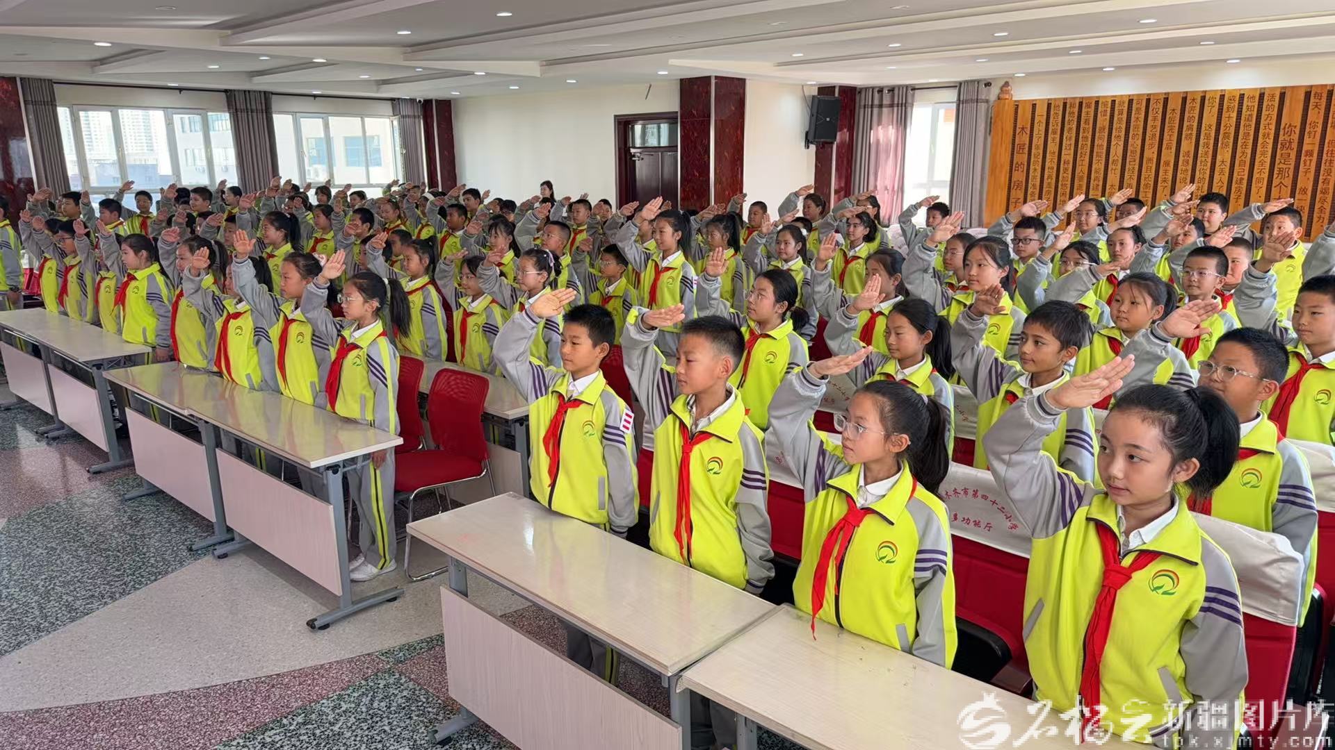 9月25日,乌鲁木齐市第四十二小学师生收听收看新疆维吾尔自治区成立70周年庆祝大会直播。石榴云/新疆日报记者 韩亮摄