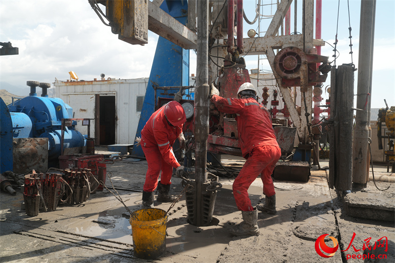 柴探2井,工人们正在提、下钻。人民网记者 唐宋摄