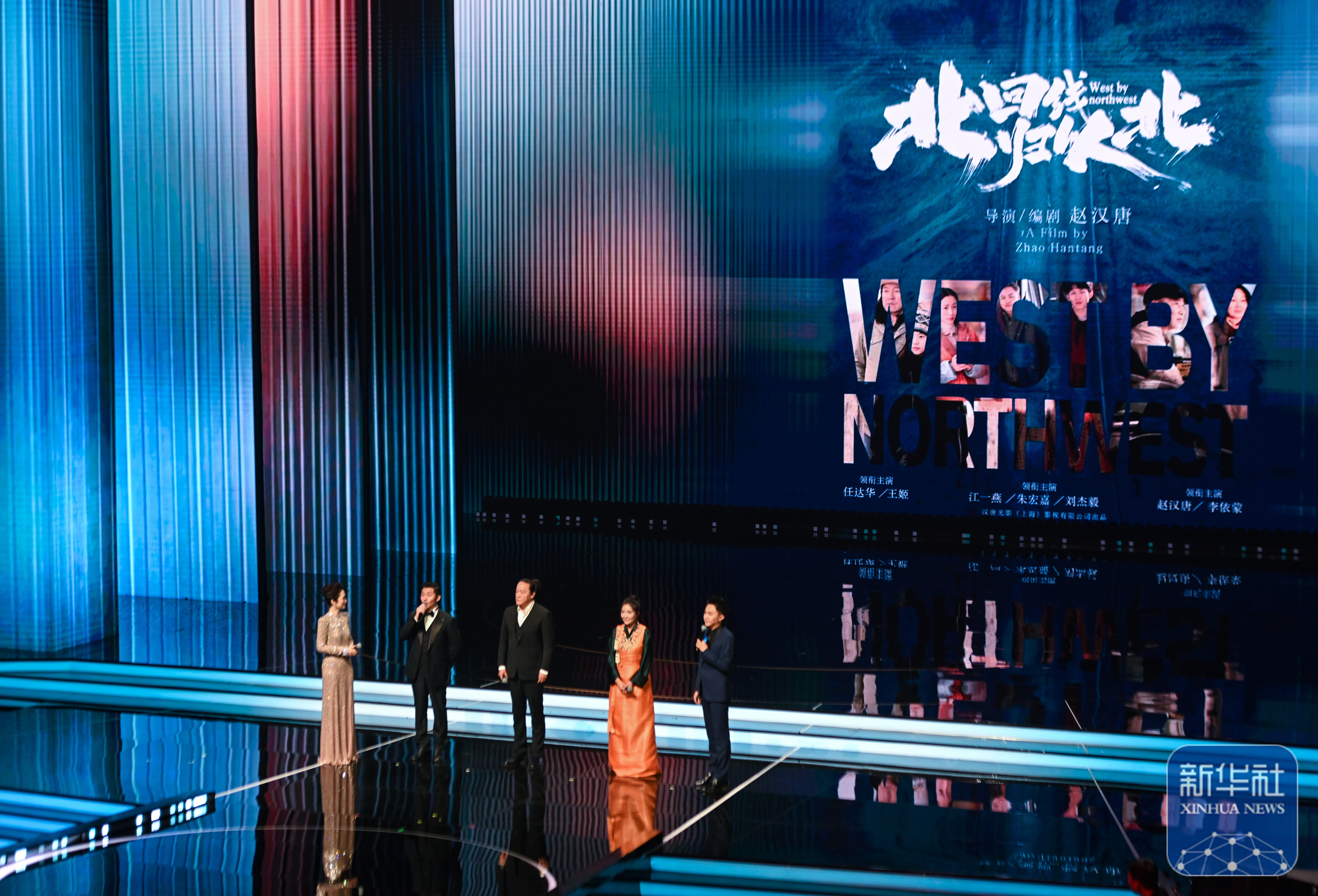 ↑ 11月11日晚,新片新作《北回归线以北》主创人员在2025年中国金鸡百花电影节开幕式上进行推介。