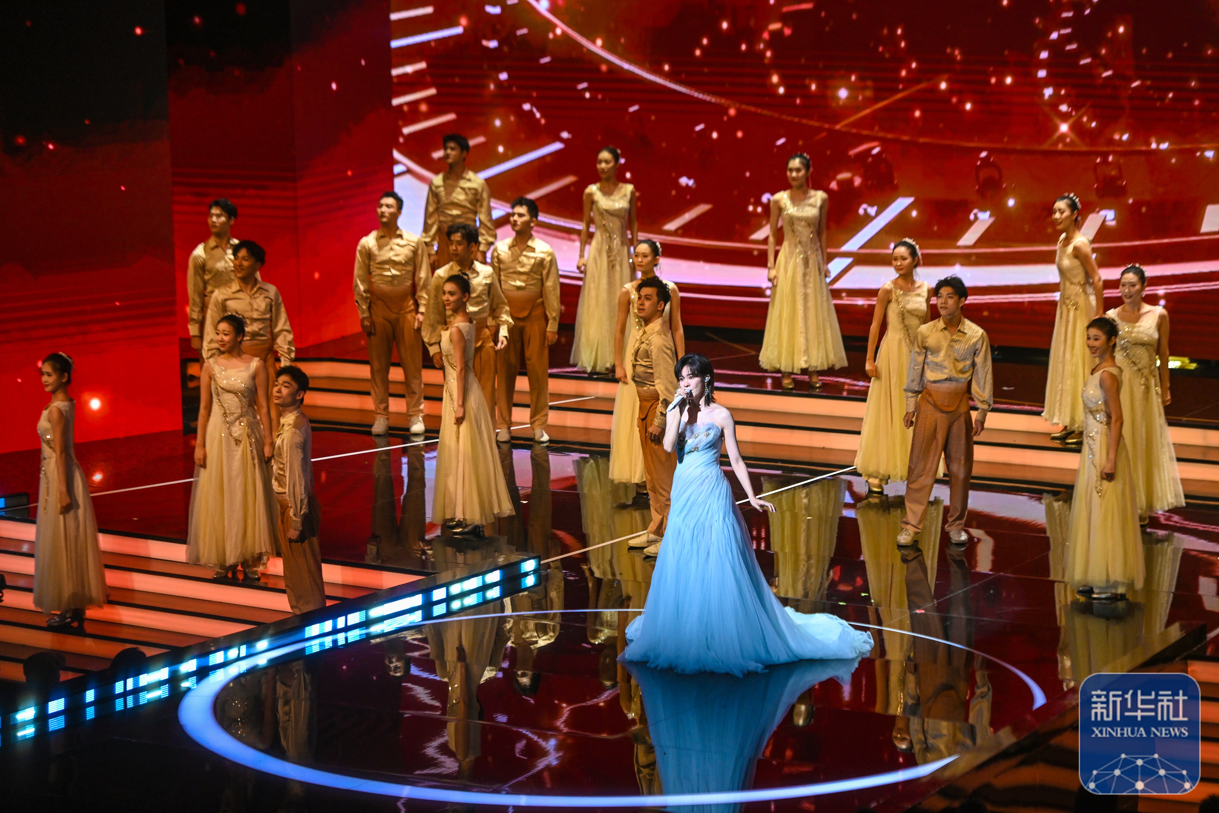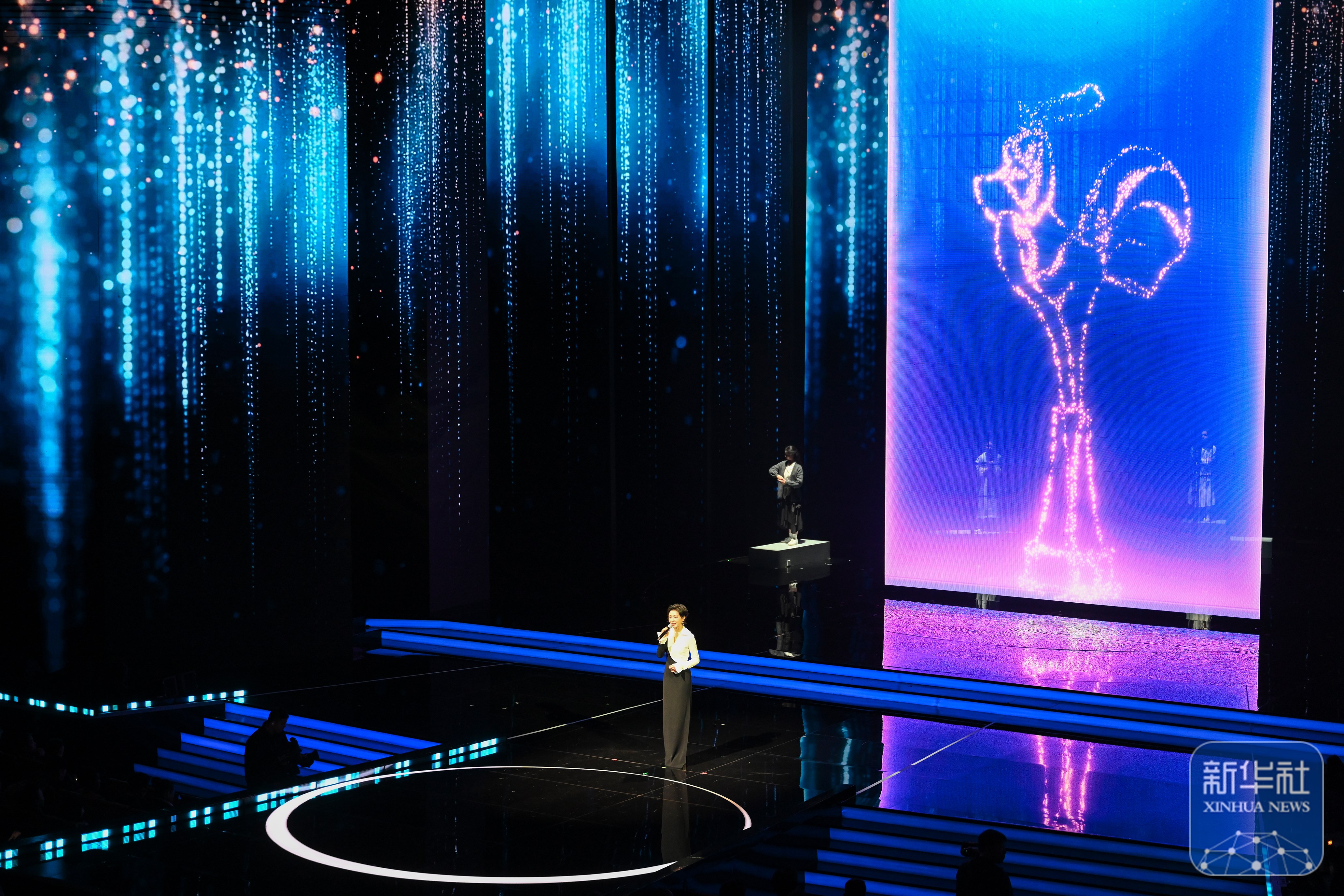 ↑ 11月11日晚拍摄的2025年中国金鸡百花电影节开幕式现场。
