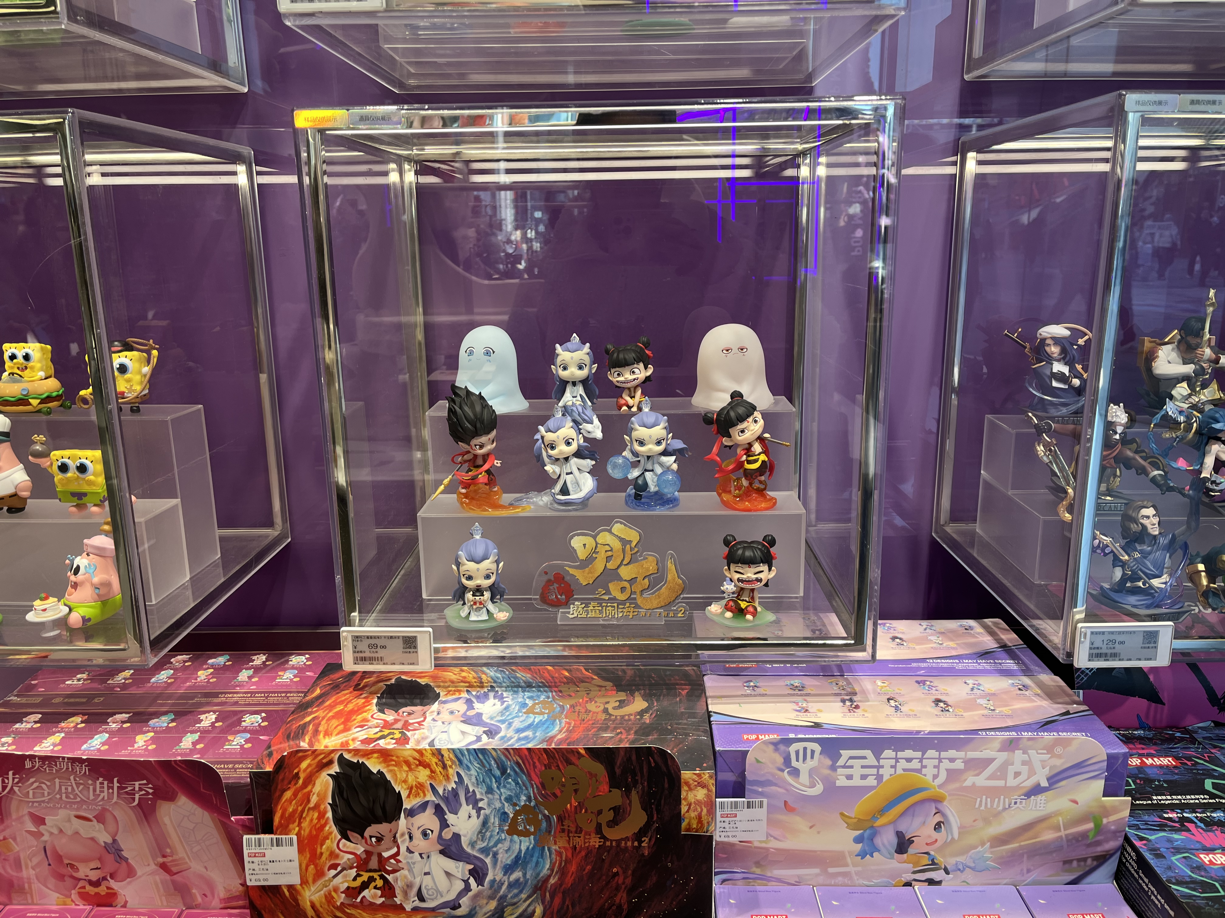 北京一家泡泡玛特门店里陈列的哪吒系列手办。新华社记者阳娜 摄
