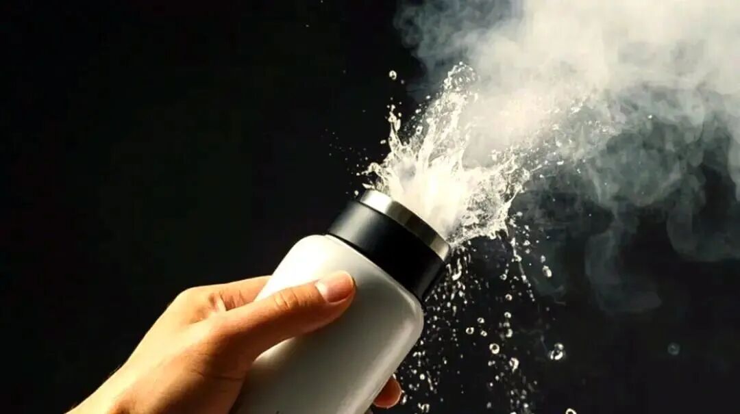 2025年8月,黑龙江黑河一男子在保温杯内用热水泡清洗剂,密封杯盖后,保温杯突然爆炸,热水四处飞喷,杯子甚至因冲击力过大而嵌入墙内。