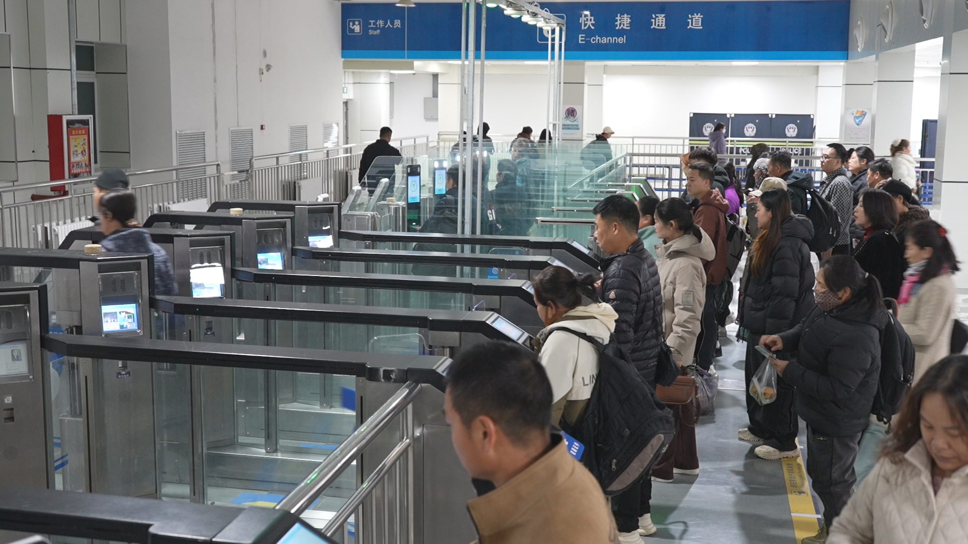 游客有序通过中哈霍尔果斯国际边境合作中心联检大厅