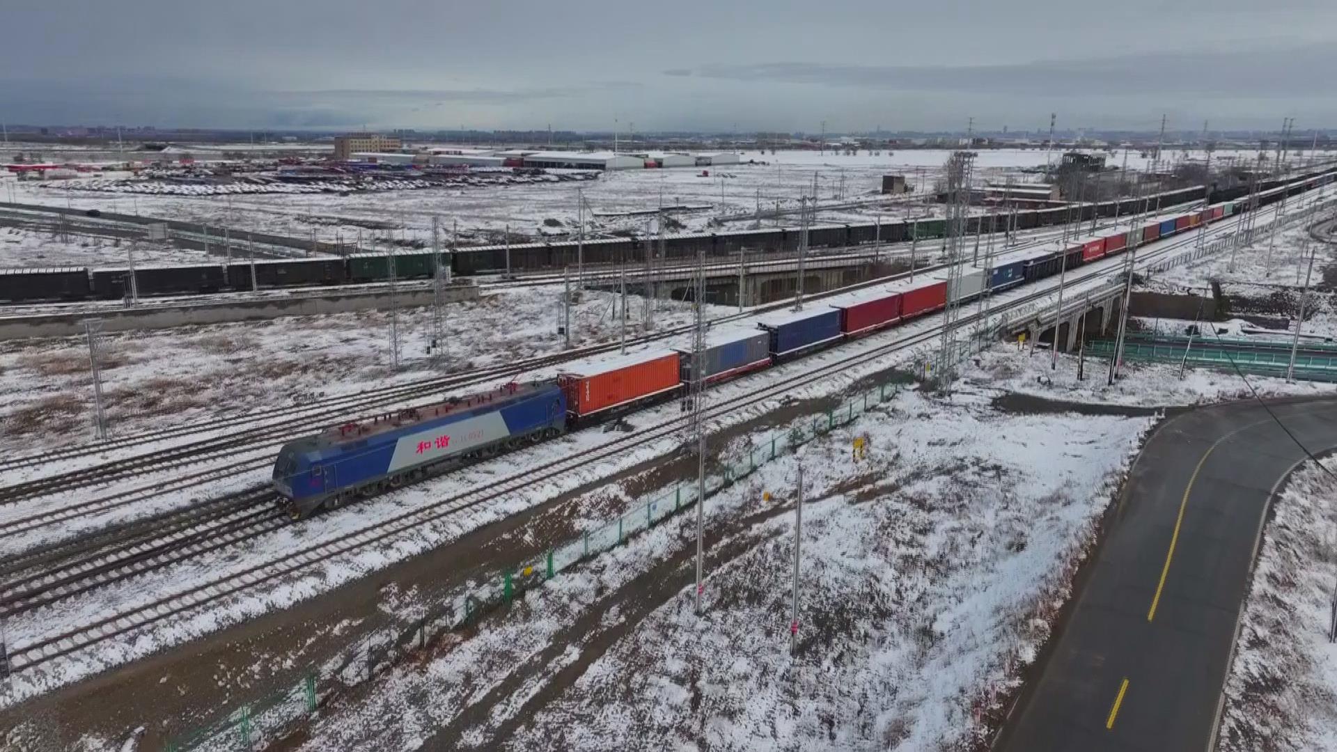 11月21日,满载货物的X8588次快递电商班列从乌鲁木齐三坪站始发,开往西安国际港。
