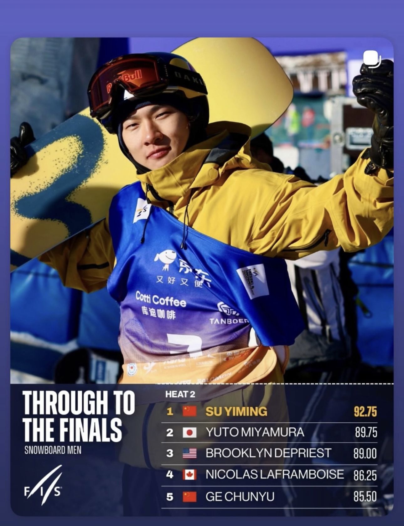 苏翊鸣葛春宇晋级大跳台世界杯决赛