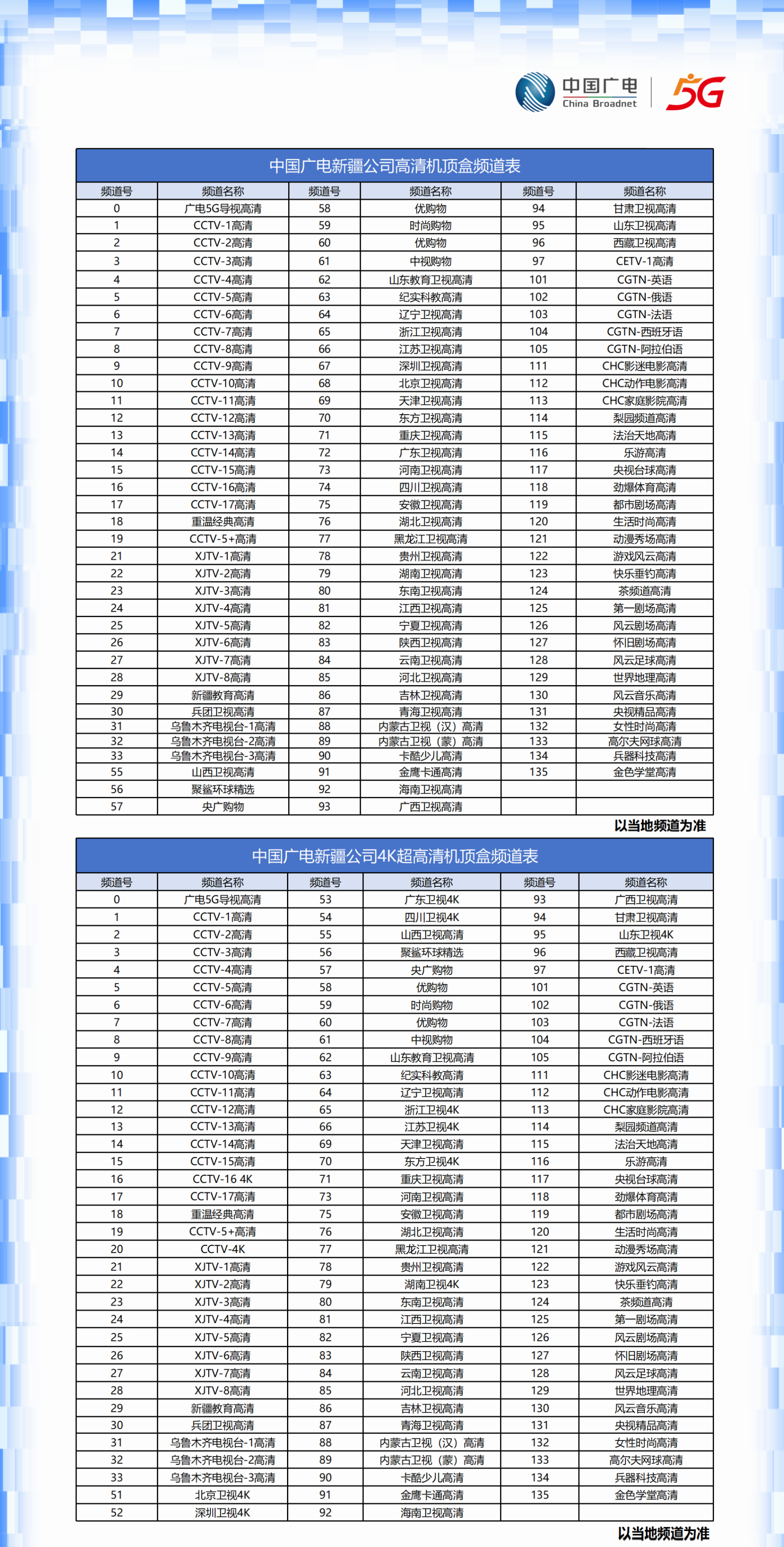 全新体验!全疆有线电视同播频道统一序号