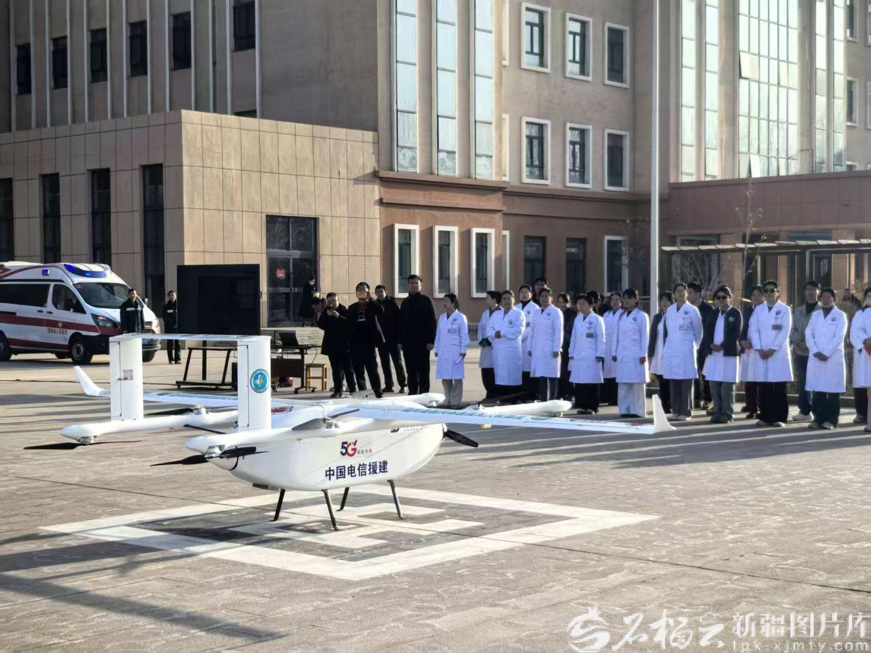 无人机医疗物资运输航线正式通航现场。中国电信新疆公司供图