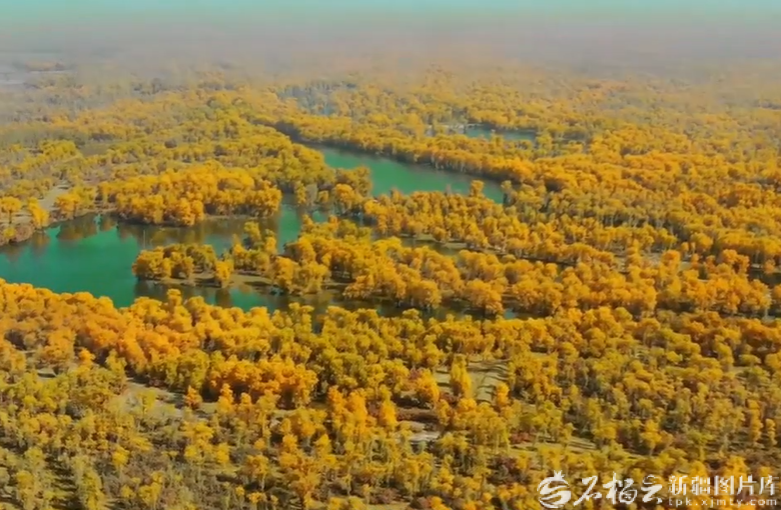 从高空俯瞰沙雅县胡杨林。沙雅县融媒体中心供图