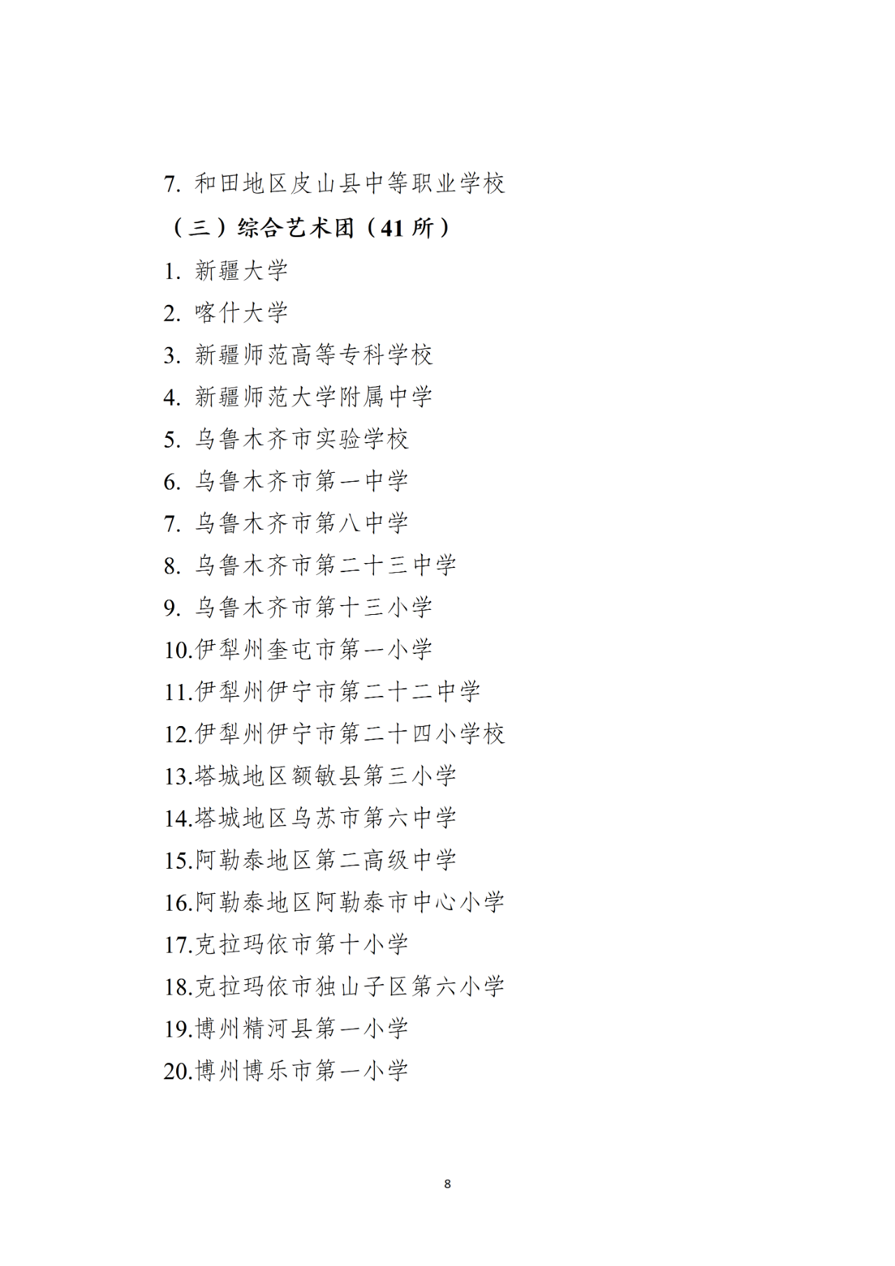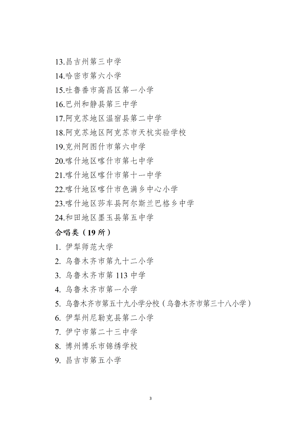 A+ A. A-根据《教育部办公厅关于开展全国示范性特色学校创建的通知》(教体艺函〔2025〕37号)精神,经学校自评申报、各地(州、市)教育局审核推荐、自治区教育厅组织专家评审,拟推荐160所学校为全国示范性高水平艺术团候选单位、5所高校为中华优秀传统文化艺术传承基地候选单位(排名不分先后)。现予以公示,公示期为2025年12月4日至8日。