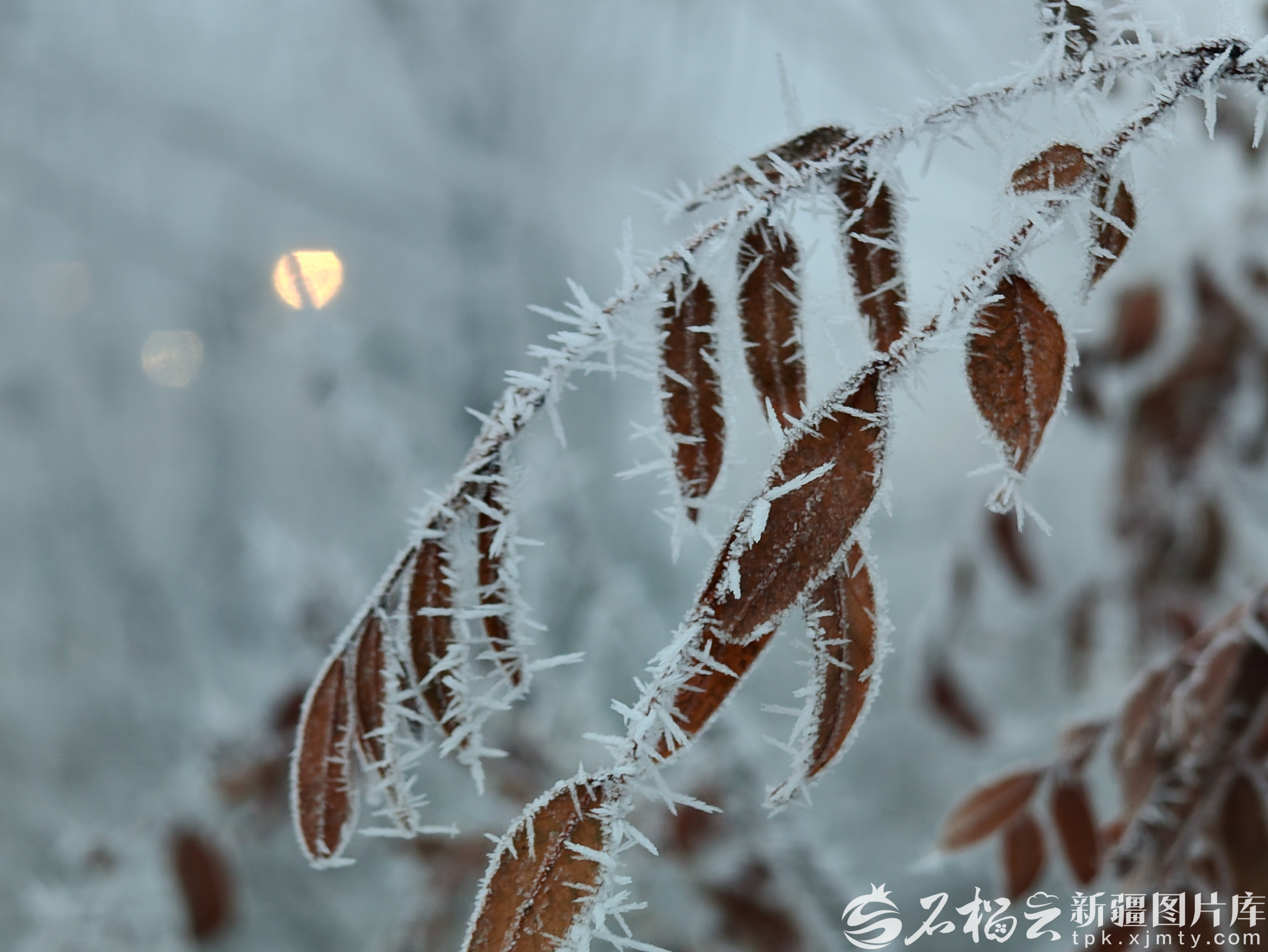 12月8日,乌鲁木齐市水磨沟区静园路上的雾凇景观。石榴云/新疆日报记者 秦鹏摄