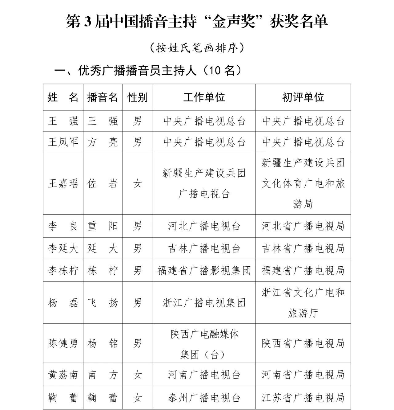 第3届“金声奖”获奖名单公布 新疆一播音员获殊荣