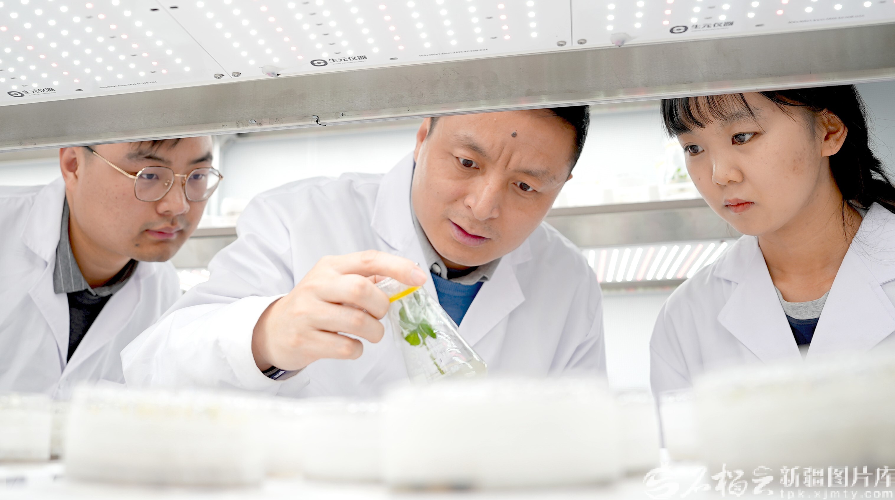 5月16日,中国农业科学院西部农业研究中心副主任、作物基因编辑与生物育种团队负责人杨作仁(中),带领团队进行育种实验。李伦摄
