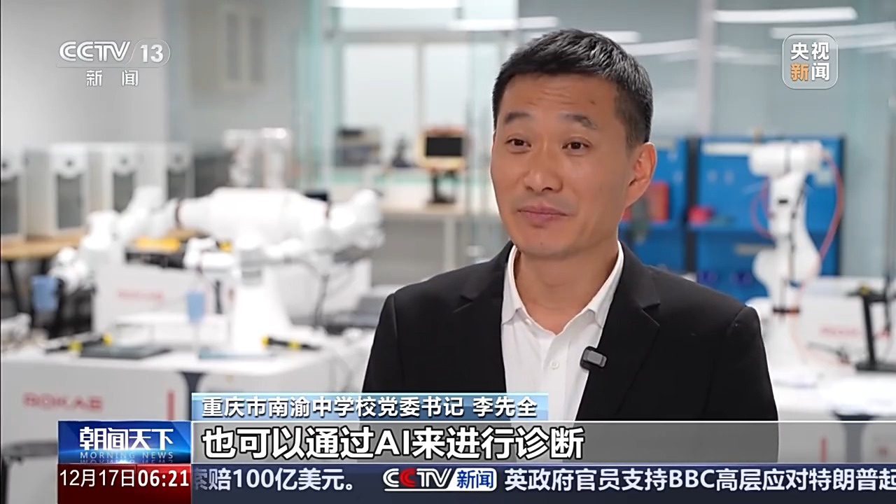 重庆市南渝中学校党委书记 李先全:这个新学期刚用的,包括我们的实验也可以通过AI来进行诊断,学生很快可以知道在自己实验的过程当中,哪些细节的规范性不够。人工智能赋能科学教育教学,这是当下学校课程改革,课堂改革重要的一个抓手。