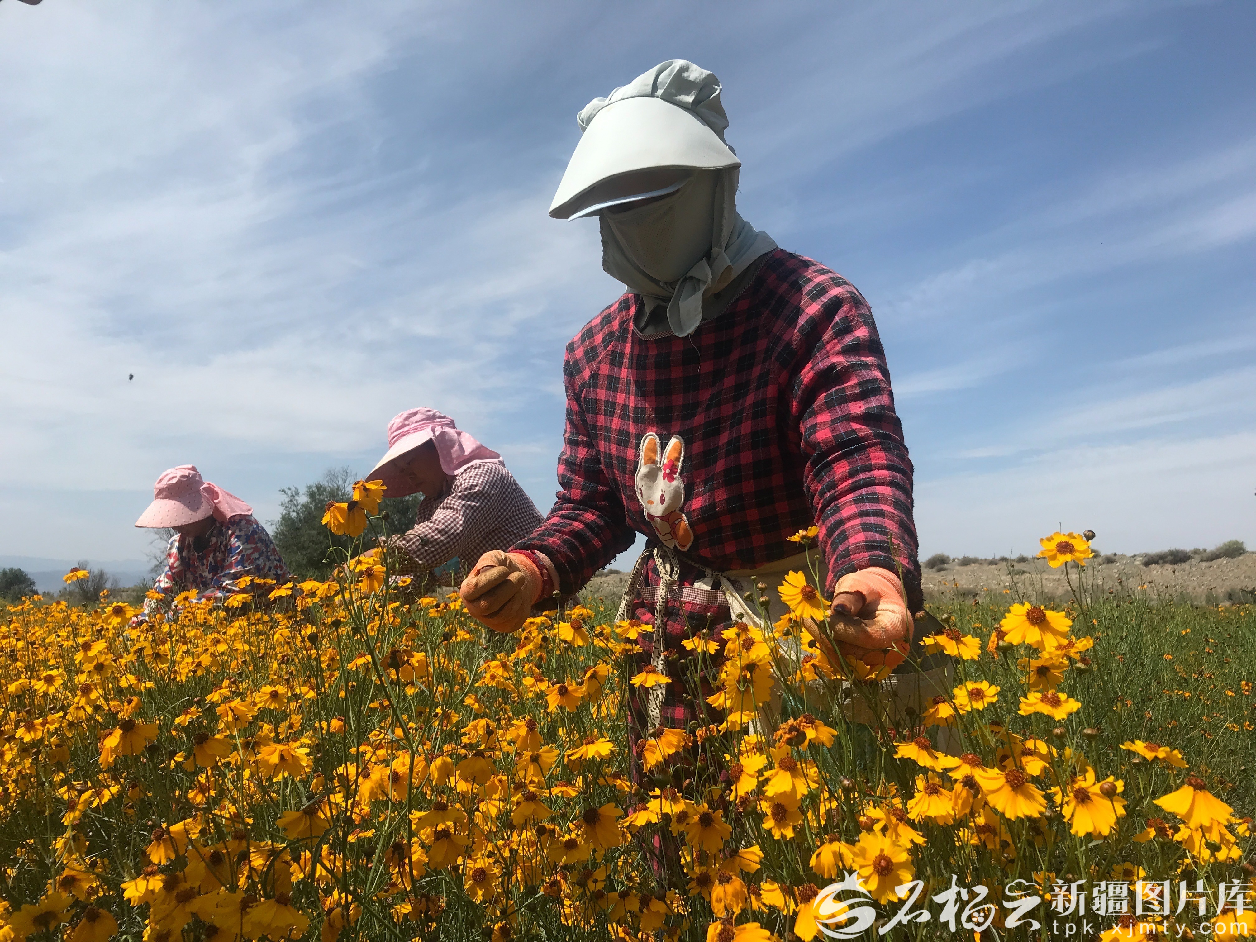 乌鲁木齐市达坂城区村民在采摘雪菊(资料图)。