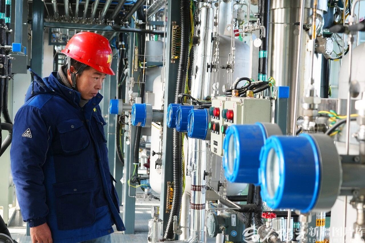 12月20日,哈密富油煤研究院中试基地内,技术人员正在巡检设备。郭子毅摄