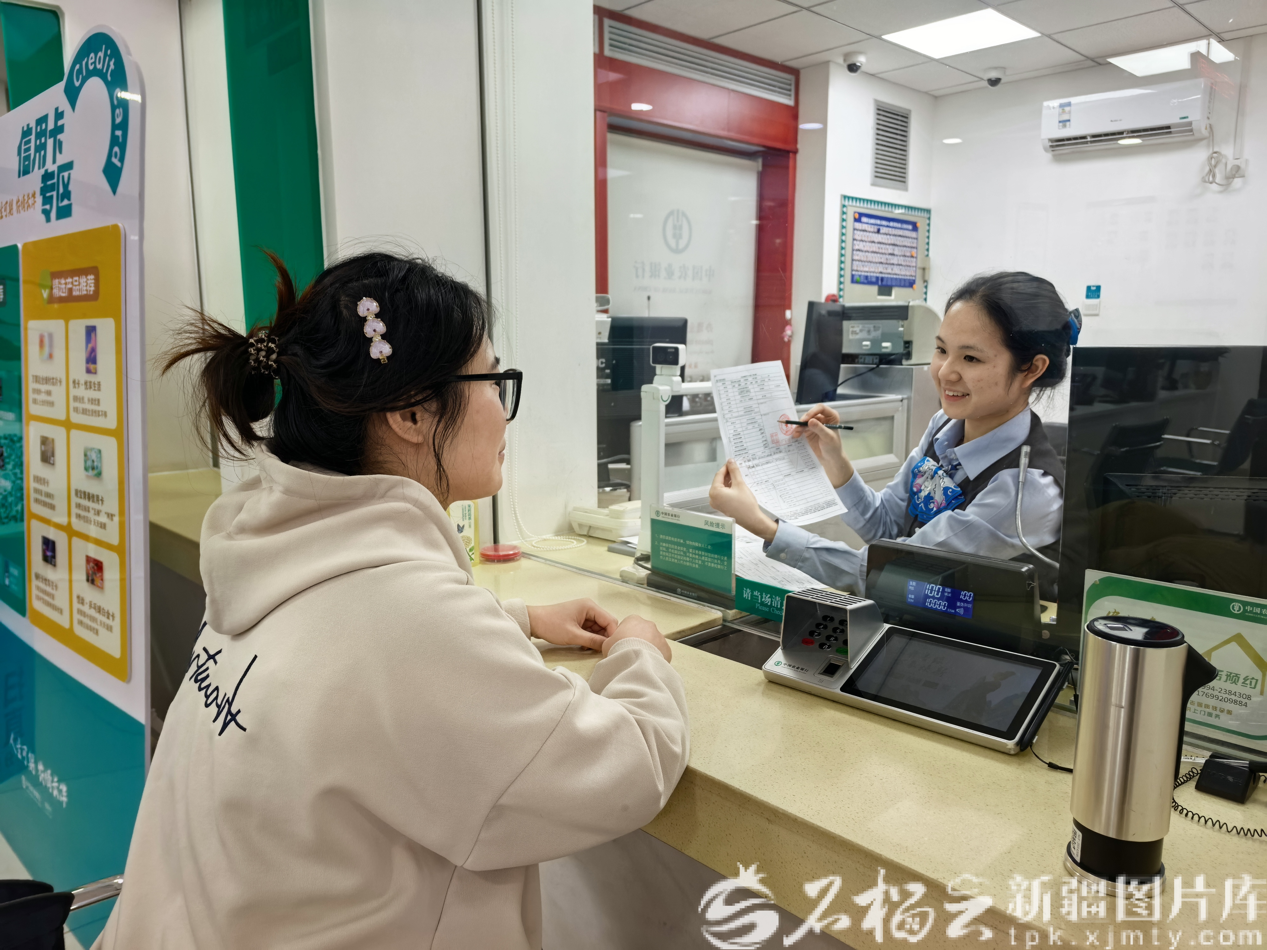 12月19日,中国农业银行昌吉长宁路支行营业厅内,工作人员正在帮助客户办理业务。吴俊亨 摄