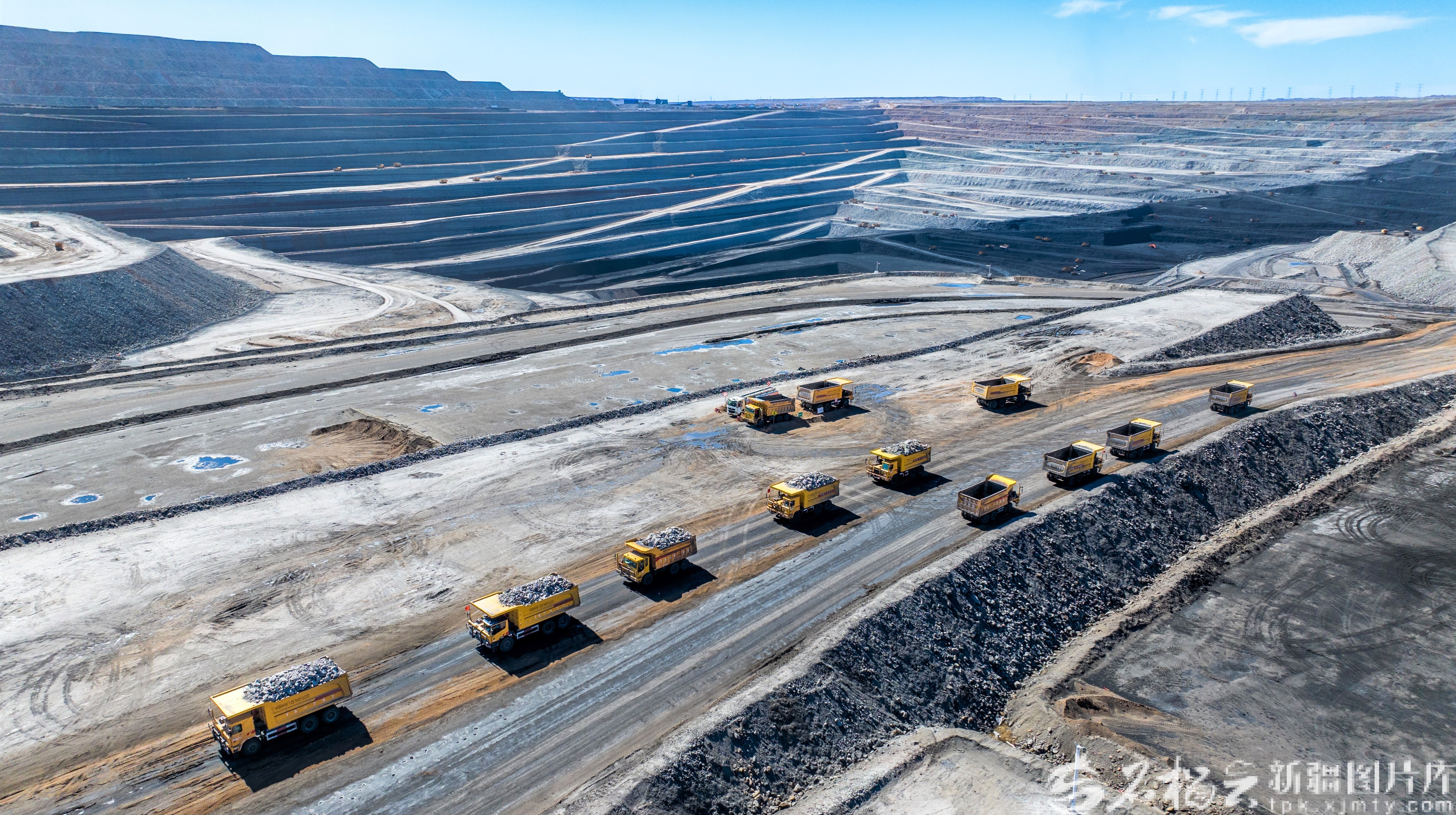 2025年5月7日,新疆宜化矿业有限公司五彩湾一号露天煤矿无人矿卡作业场景。丁玉礼摄