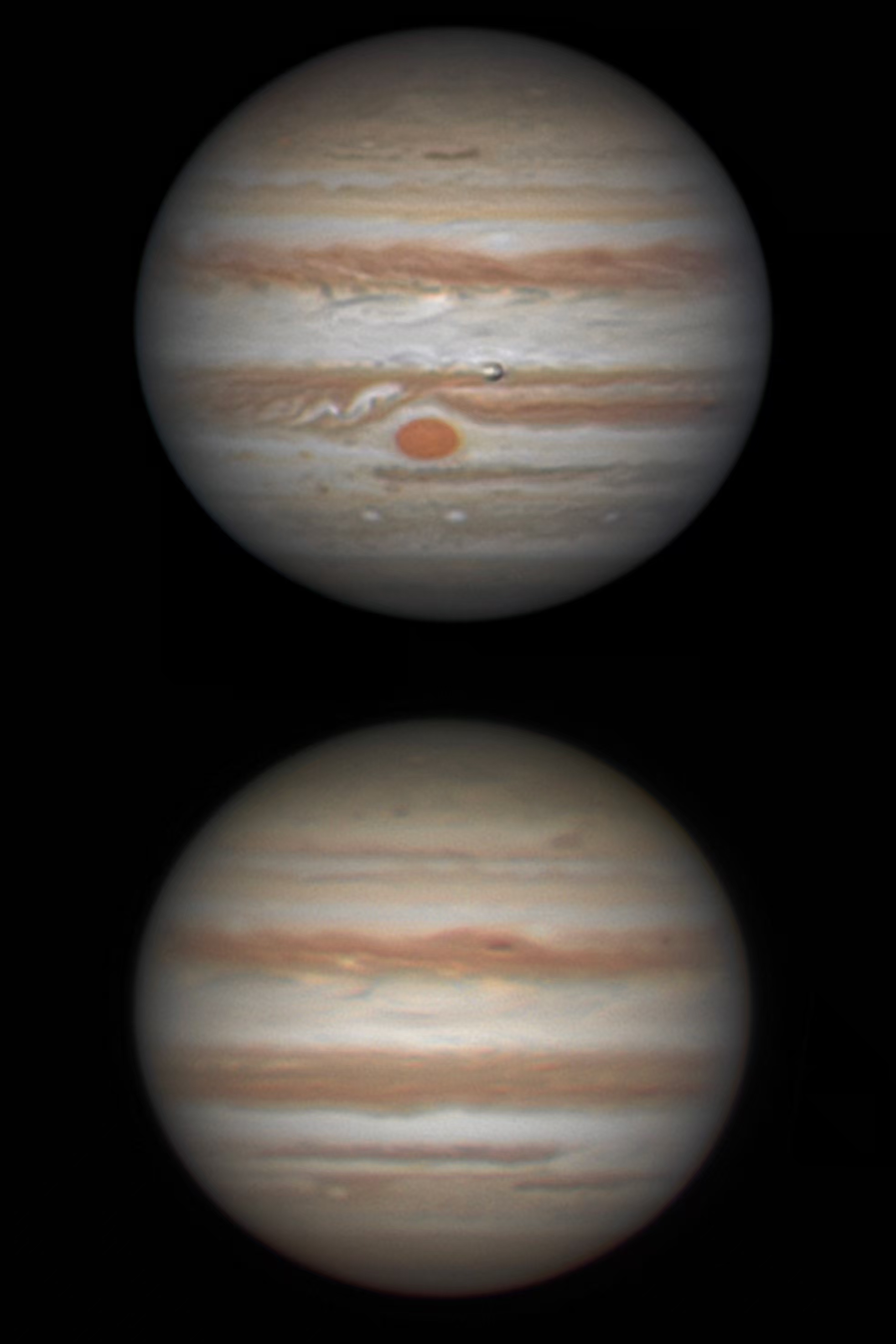 10日凌晨,汉玲对木星进行了观测;10日晚至11日凌晨,汉玲再次对木星进行了观测。“虽然天气一般,大气宁静度也不是很好,但我还是拍了一些照片。通过这两个时段的照片对比,可以明显看到大气宁静度对拍摄效果的影响。”他说。