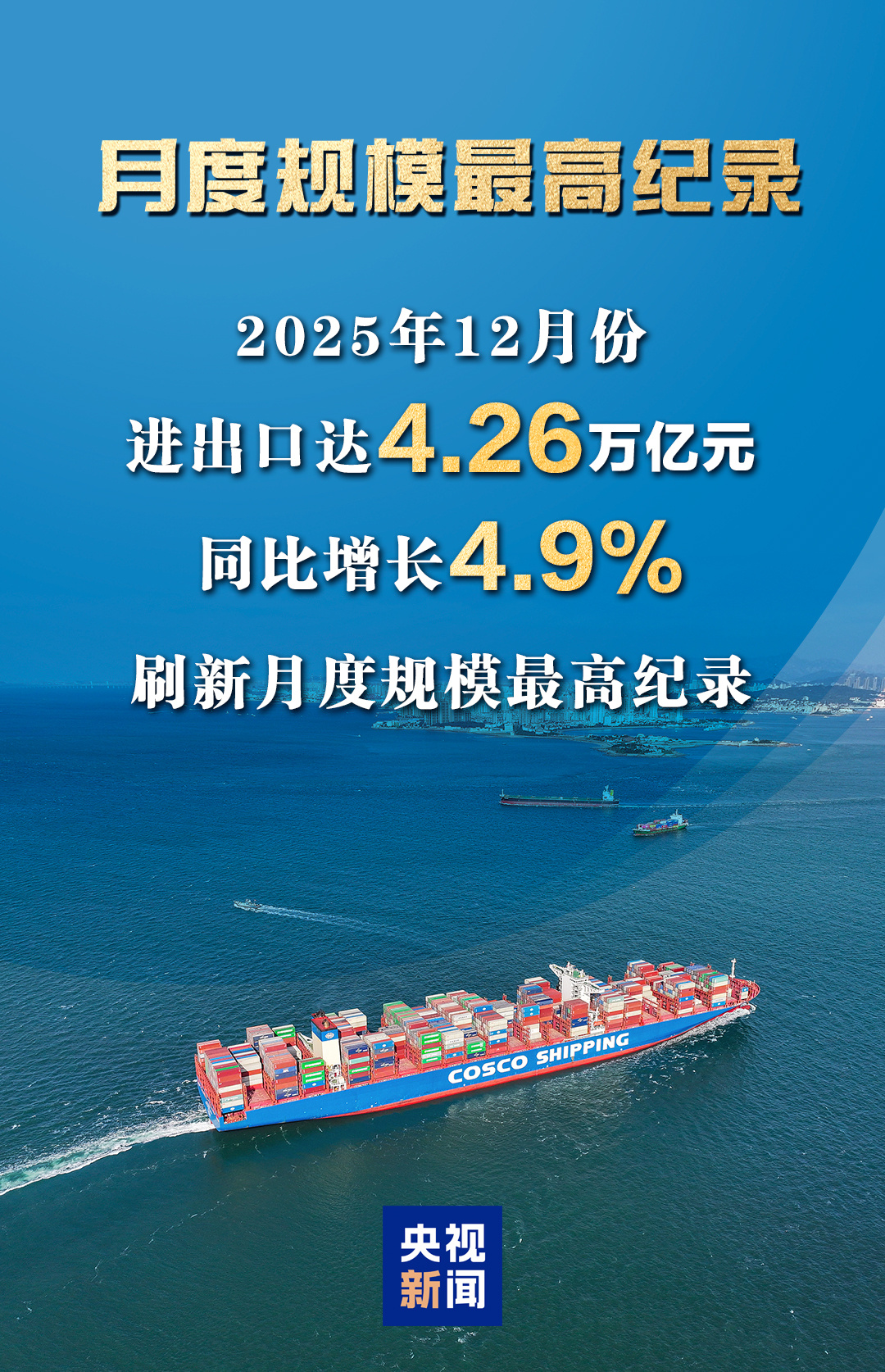 A+ A. A-据海关统计,2025年我国外贸进出口达45.47万亿元,增长3.8%。其中,出口26.99万亿元,增长6.1%;进口18.48万亿元,增长0.5%。一组图看我国2025年外贸进出口成绩单↓