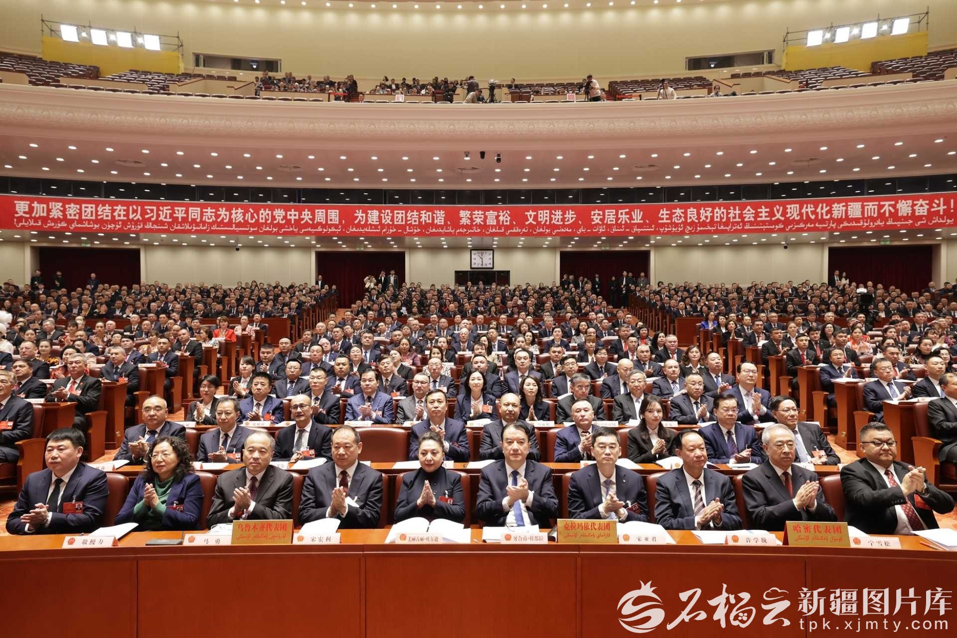 1月27日,自治区十四届人大四次会议在新疆人民会堂开幕。图为会议现场。石榴云/新疆日报记者 崔志坚摄