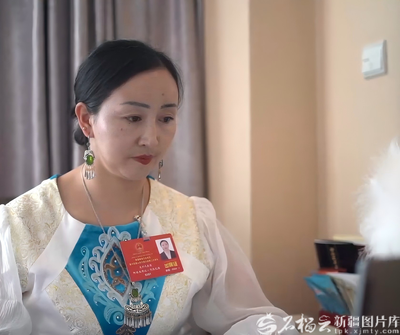 自治区人大代表、阿合奇县色帕巴依乡幼儿园教师阿依木布比·肉孜巴依。图片由本人提供