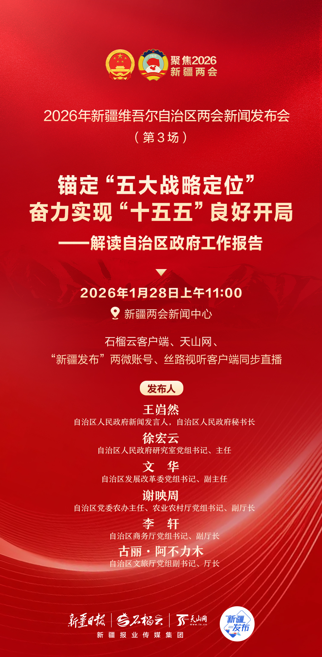 海报丨2026年新疆维吾尔自治区两会新闻发布会(第3场)——锚定“五大战略定位”,奋力实现“十五五”良好开局——解读自治区政府工作报告