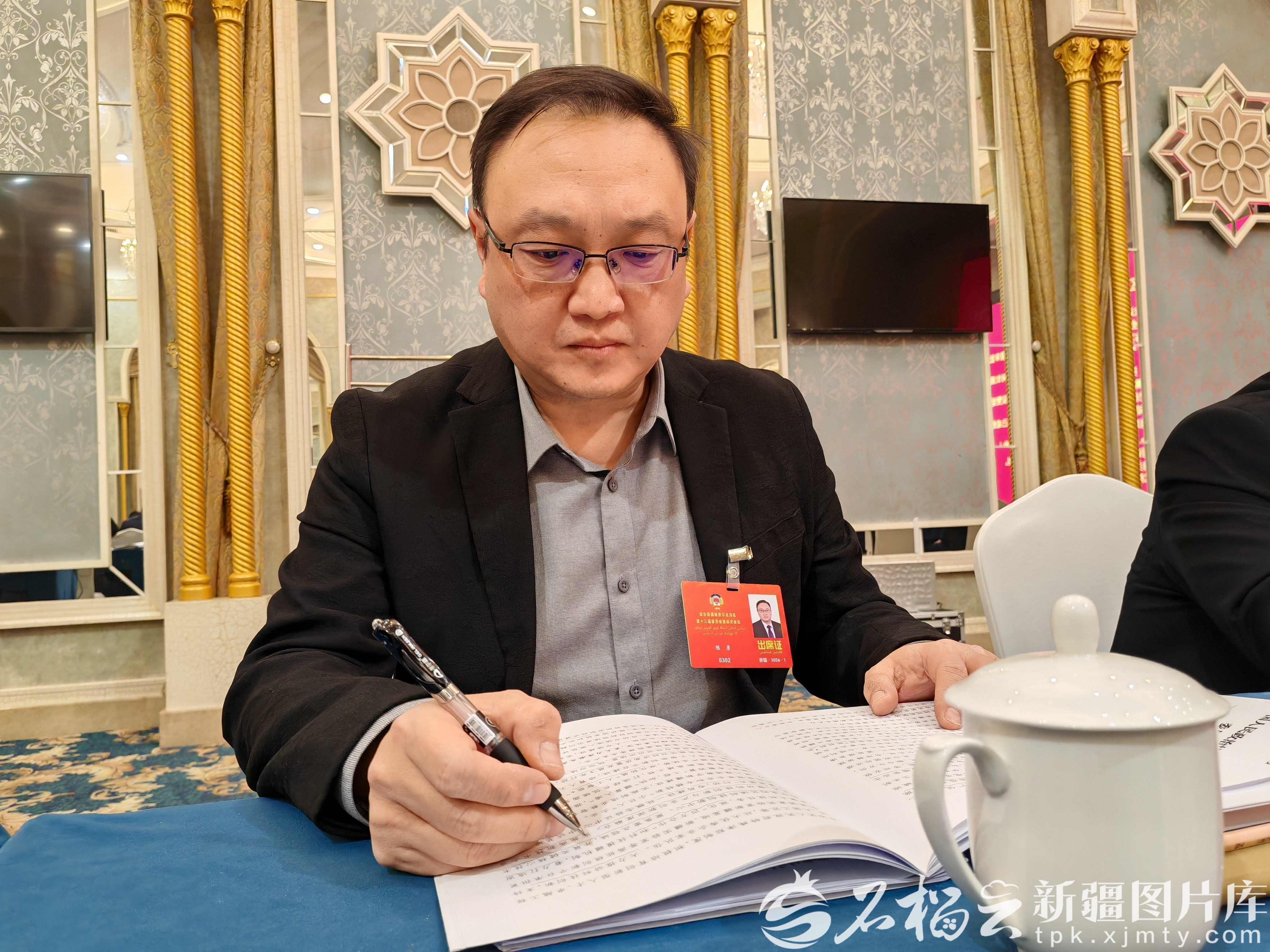 图为陈彦委员参加自治区政协十三届四次会议小组会议。石榴云/新疆日报记者 杨舒涵摄