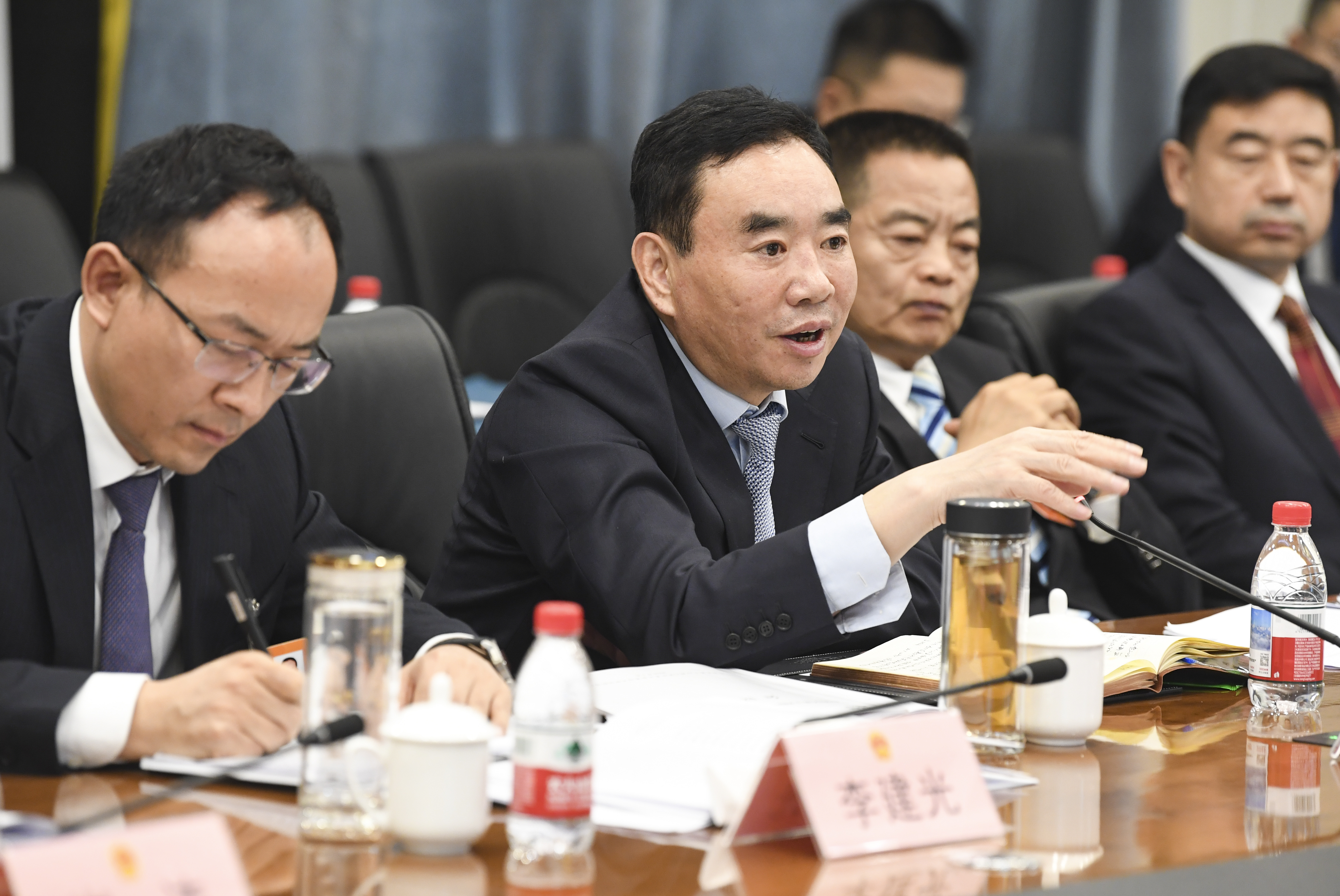1月28日,哈尔肯·哈布德克里木代表在参加塔城地区代表团审议时,就强化生态环境执法检查与天山北坡经济带大气污染治理发言。石榴云/新疆日报记者 蔡增乐摄