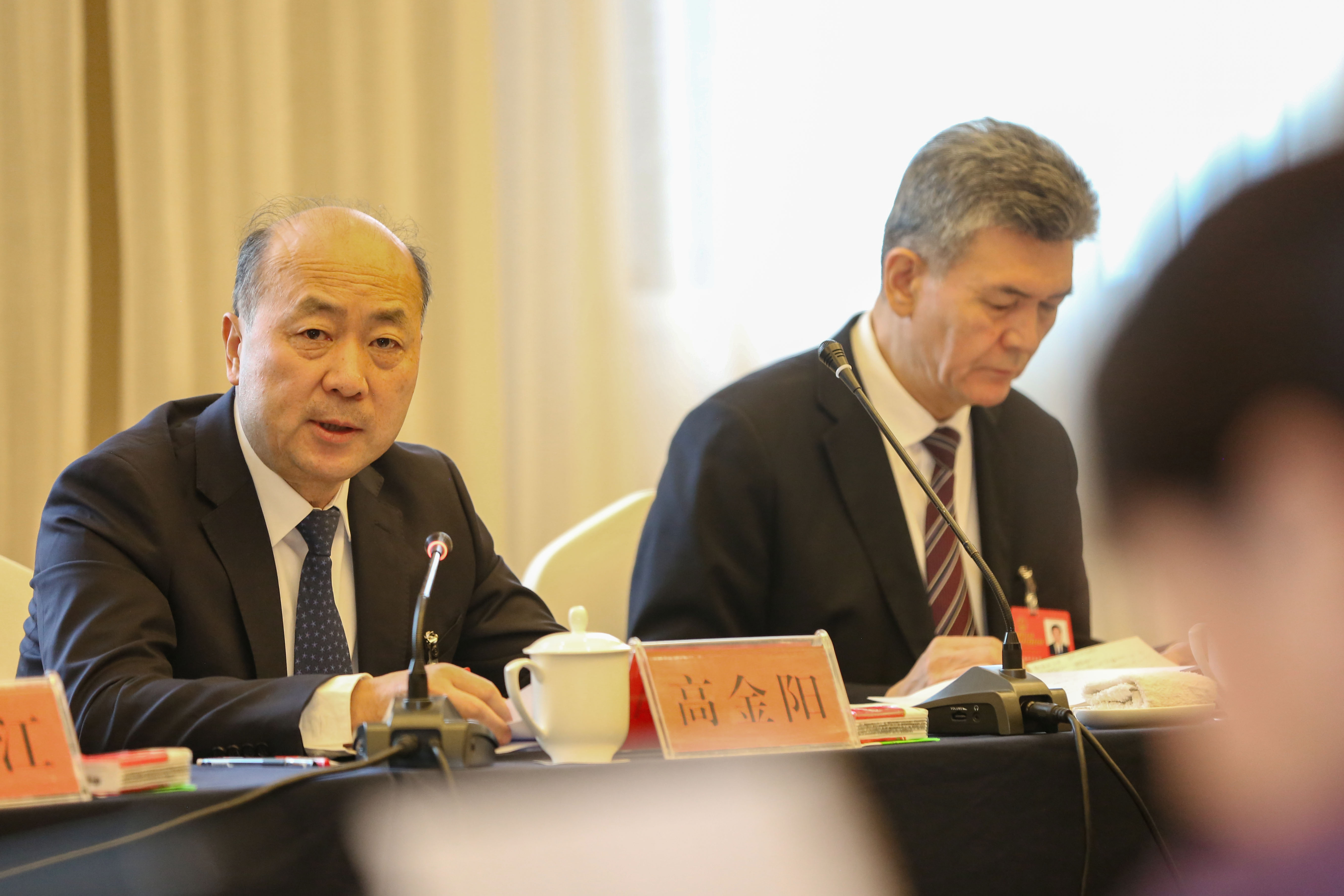 1月28日,高金阳代表在参加阿勒泰地区代表团审议时,就铁路建设与运营等内容发言。石榴云/新疆日报记者 蔡增乐摄