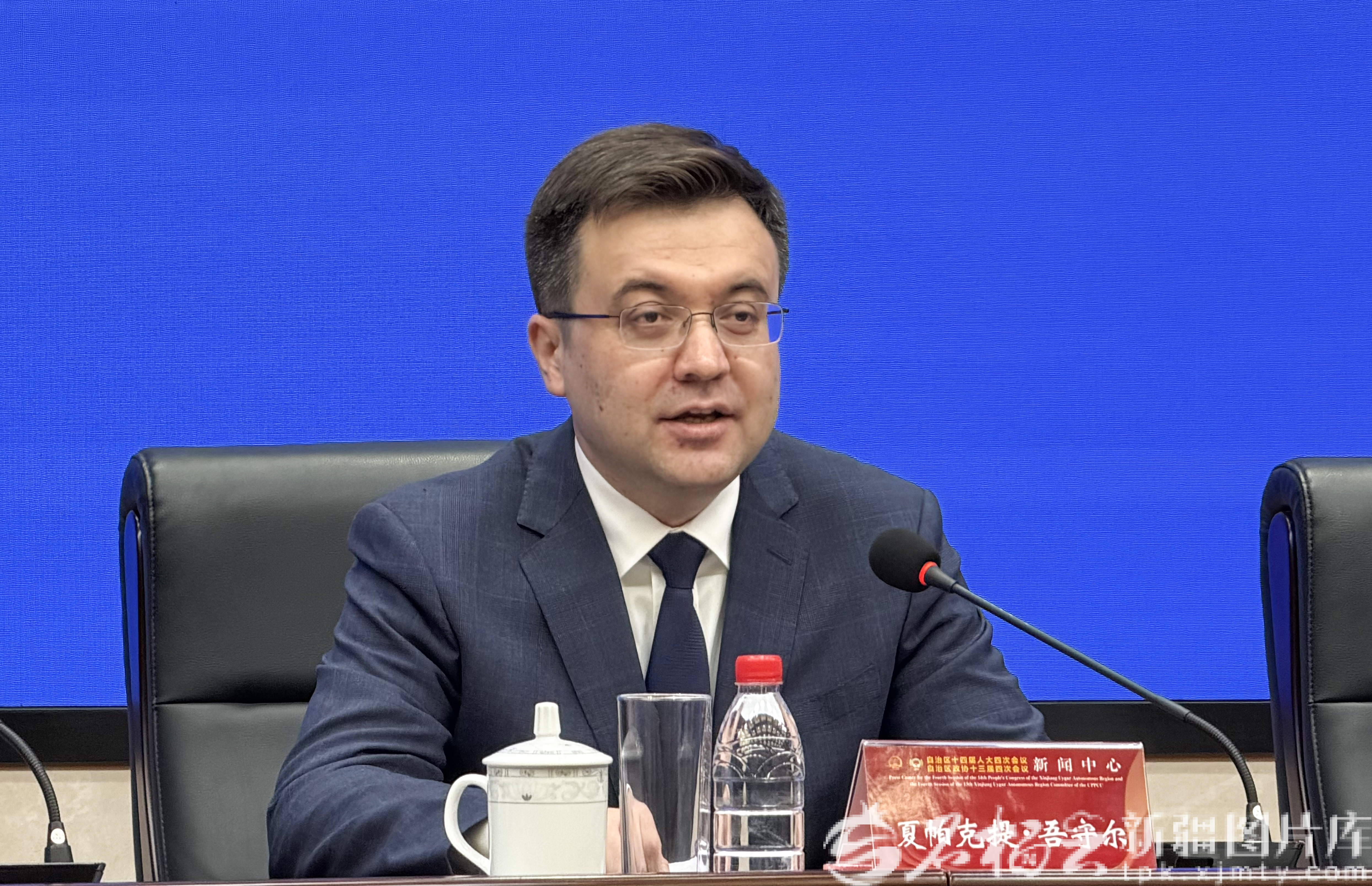 2026新疆两会第四场新闻发布会1月29日16时举行。图为自治区人民政府副秘书长,办公厅主任夏帕克提·吾守尔发言。石榴云/新疆日报记者 李瑞摄