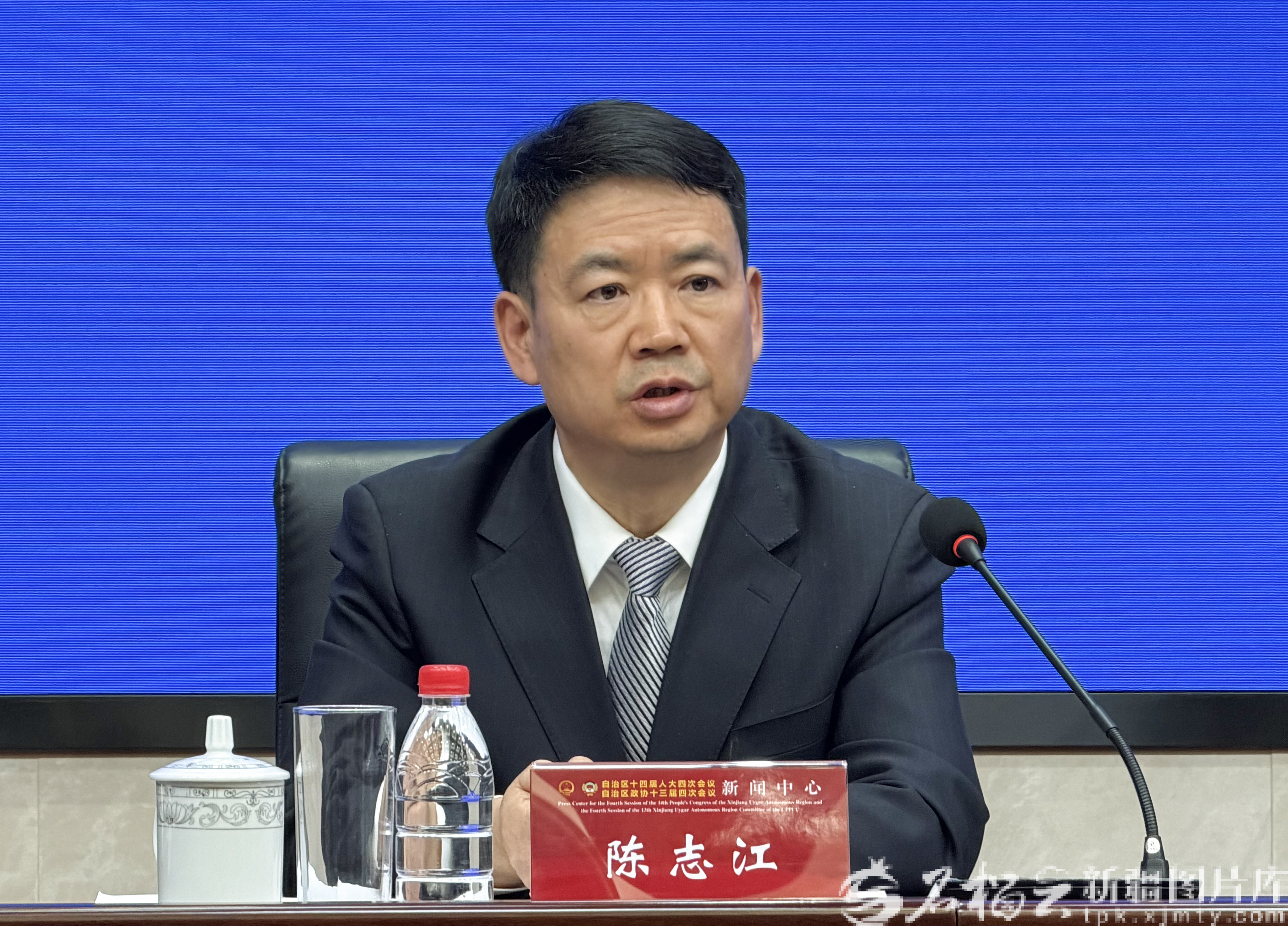 2026新疆两会第四场新闻发布会1月29日16时举行。图为陈志江作介绍。石榴云/新疆日报记者 李瑞摄