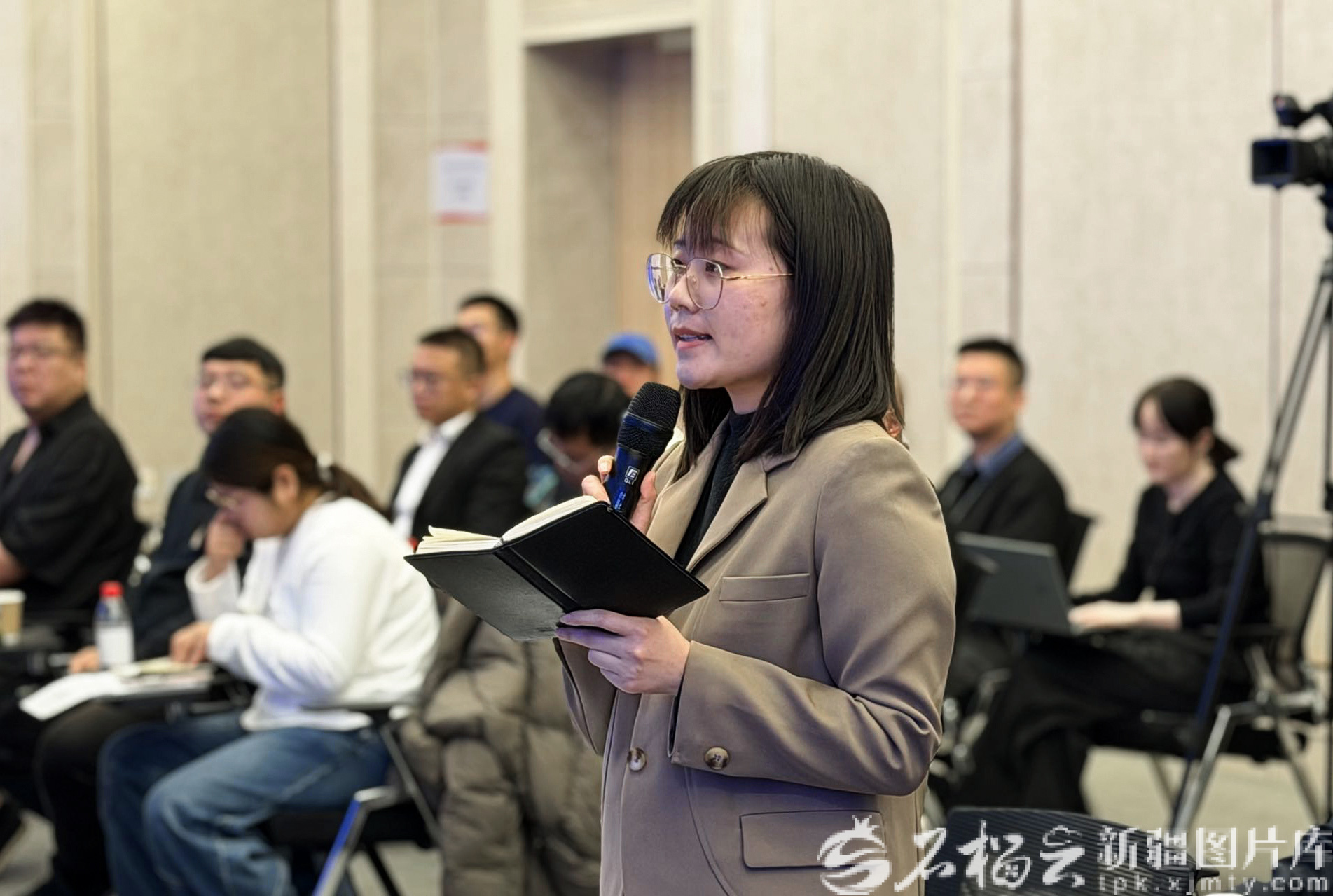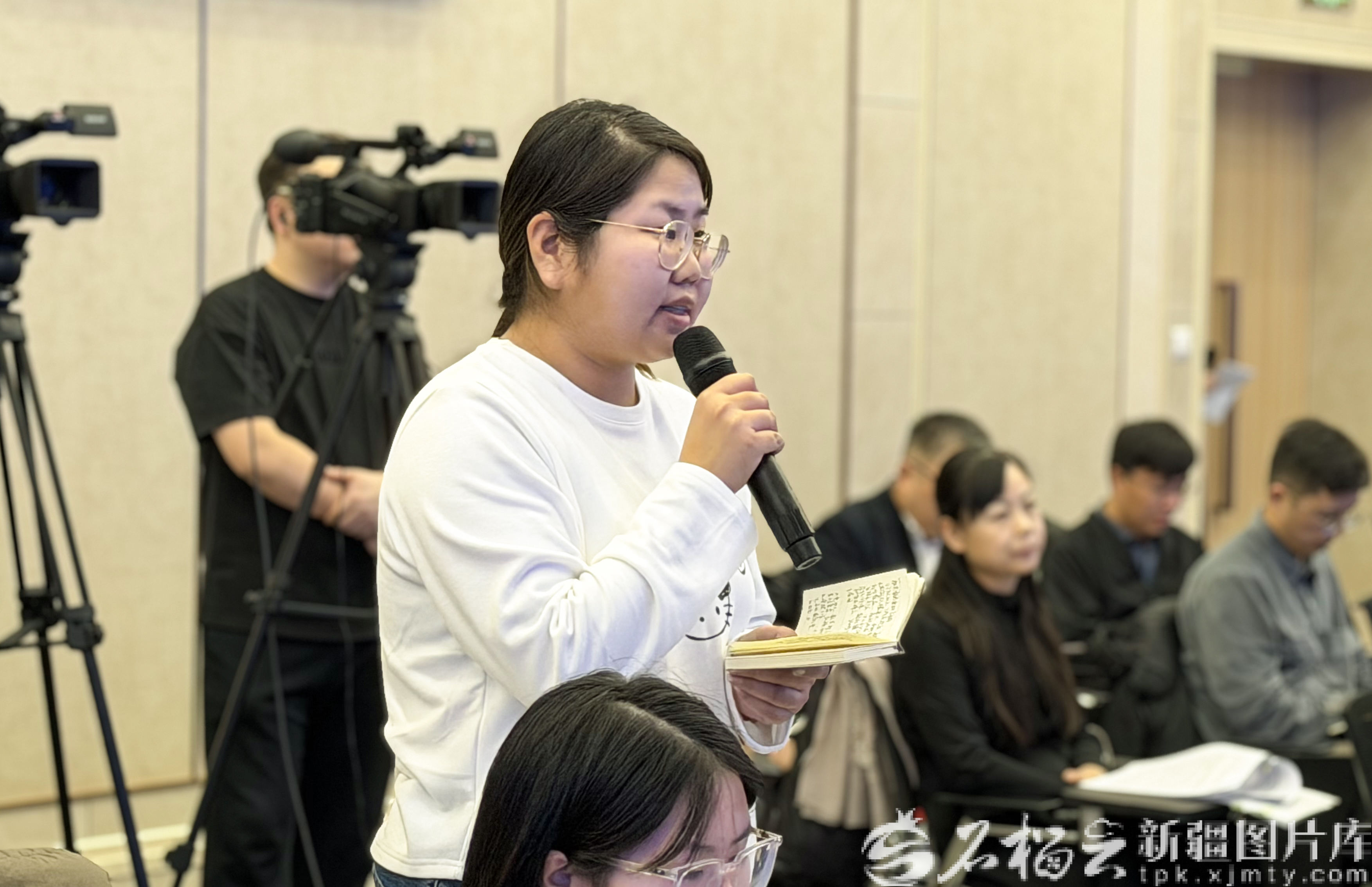 石榴云/新疆日报记者在新闻发布会现场提问。