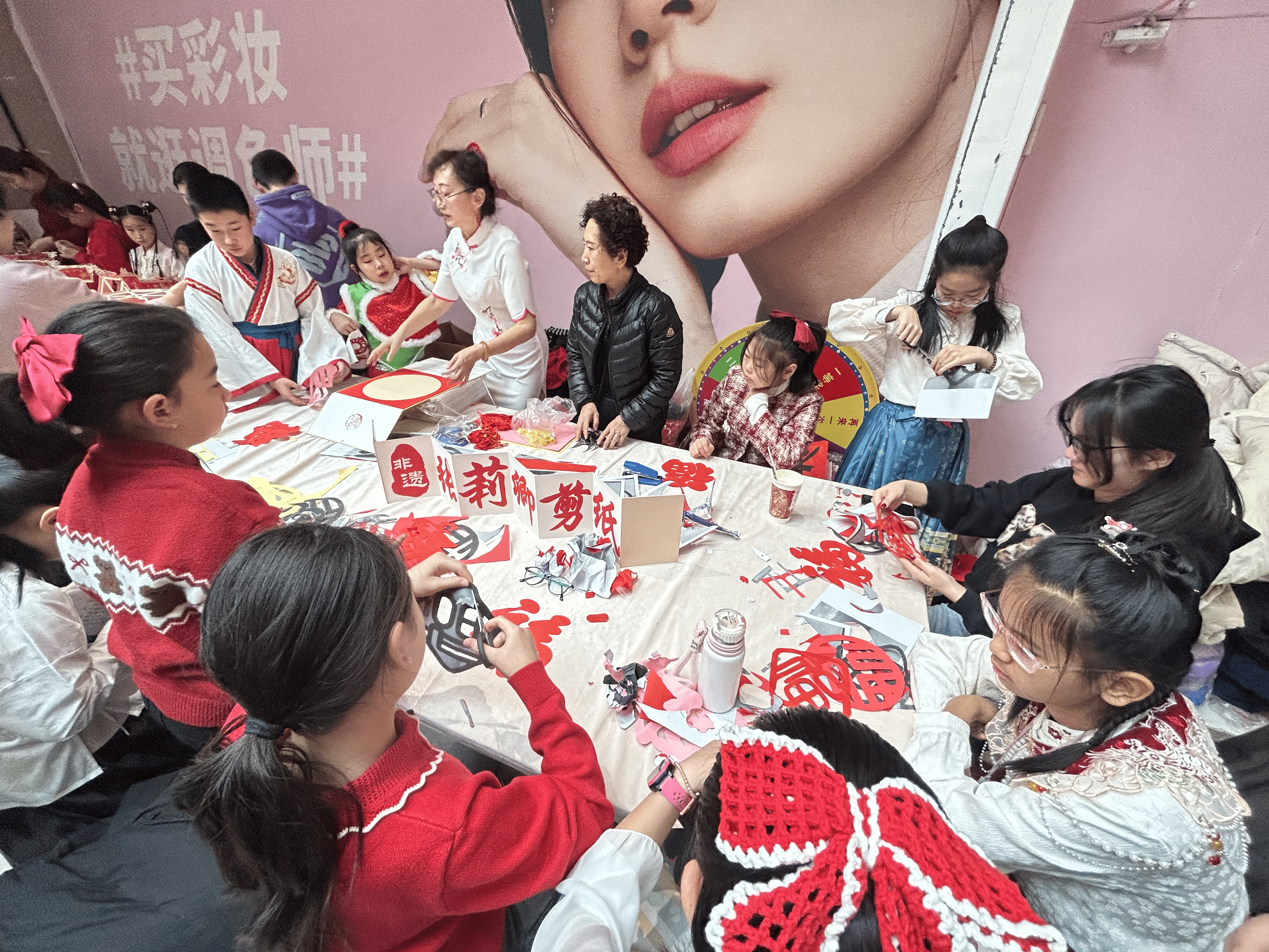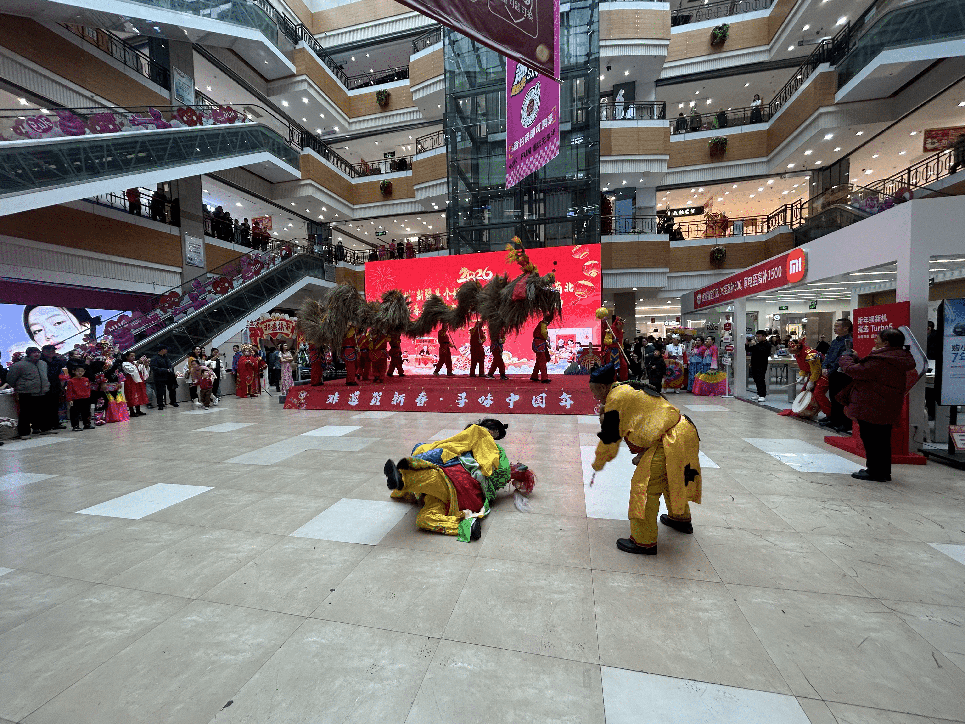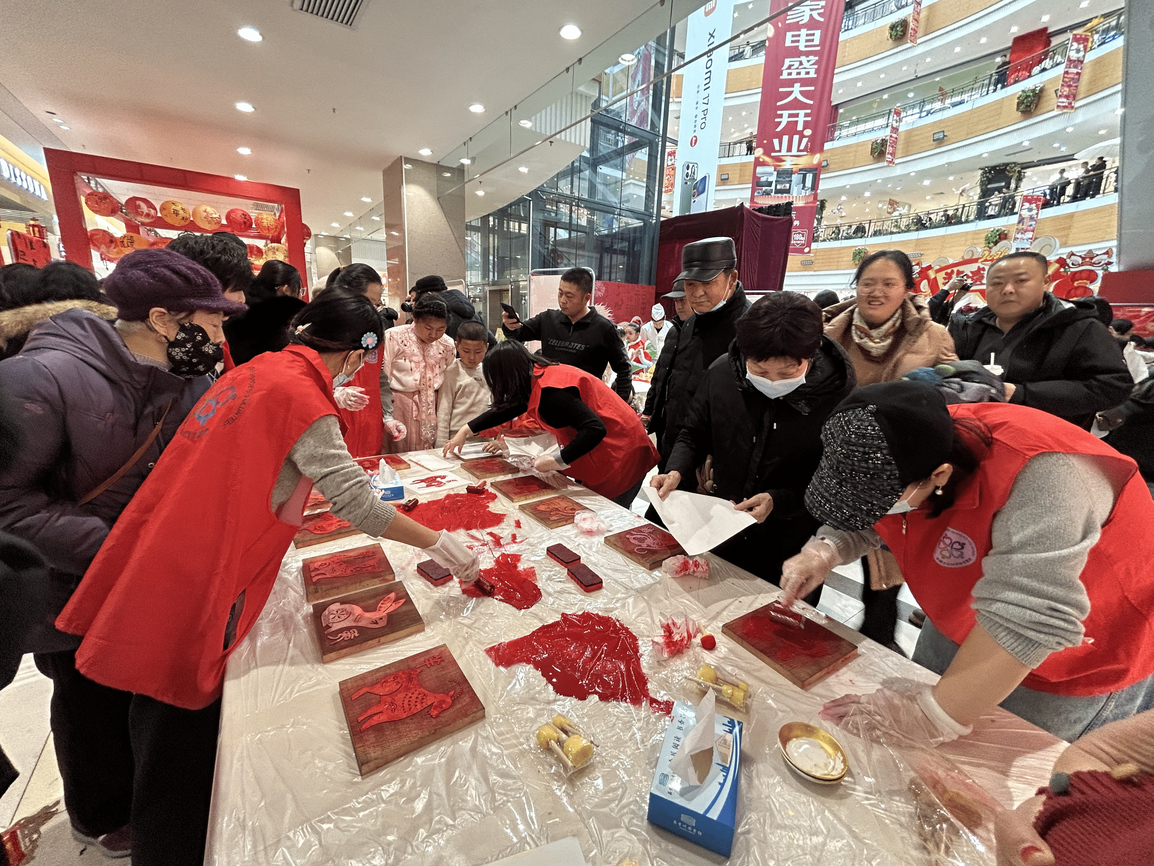 同时,在舞台旁边热闹非凡的非遗集市成为了逛吃党必去的打卡地,现场品味传统美食,猜灯谜吸引众多市民驻足参与;书法达人现场挥毫写春联,市民可以免费领一副满载祝福的红联回家;跟着非遗代表性传承人学剪“福”字,咔嚓几下剪出吉祥纹样;亲手扎一盏传统花灯,点亮专属年味;有奖竞猜、集赞有礼、幸运大转盘活动,赢得好礼带回家,还有拓印体验、非遗面塑等互动活动,可以把传统纹样和作品“搬”回家,每一件手作都是独一无二的新年纪念。