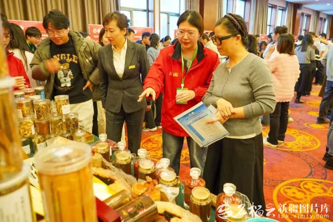 2025年12月14日,石河子大学第三届科技小院成果展暨经验交流会举行,科技小院师生们在现场为来宾介绍科研成果。石河子大学供图