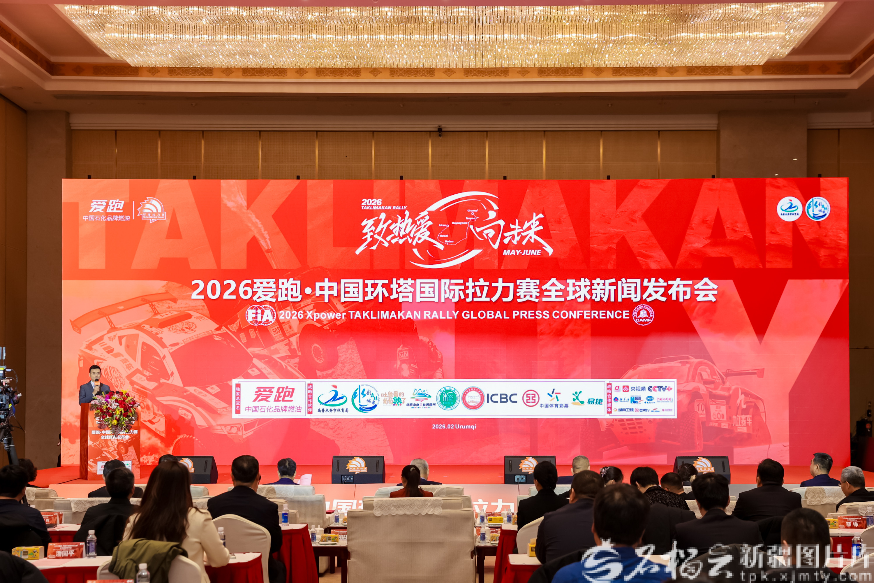 2月5日,2026爱跑·中国环塔国际拉力赛全球新闻发布会在乌鲁木齐市举行。图为发布会现场。