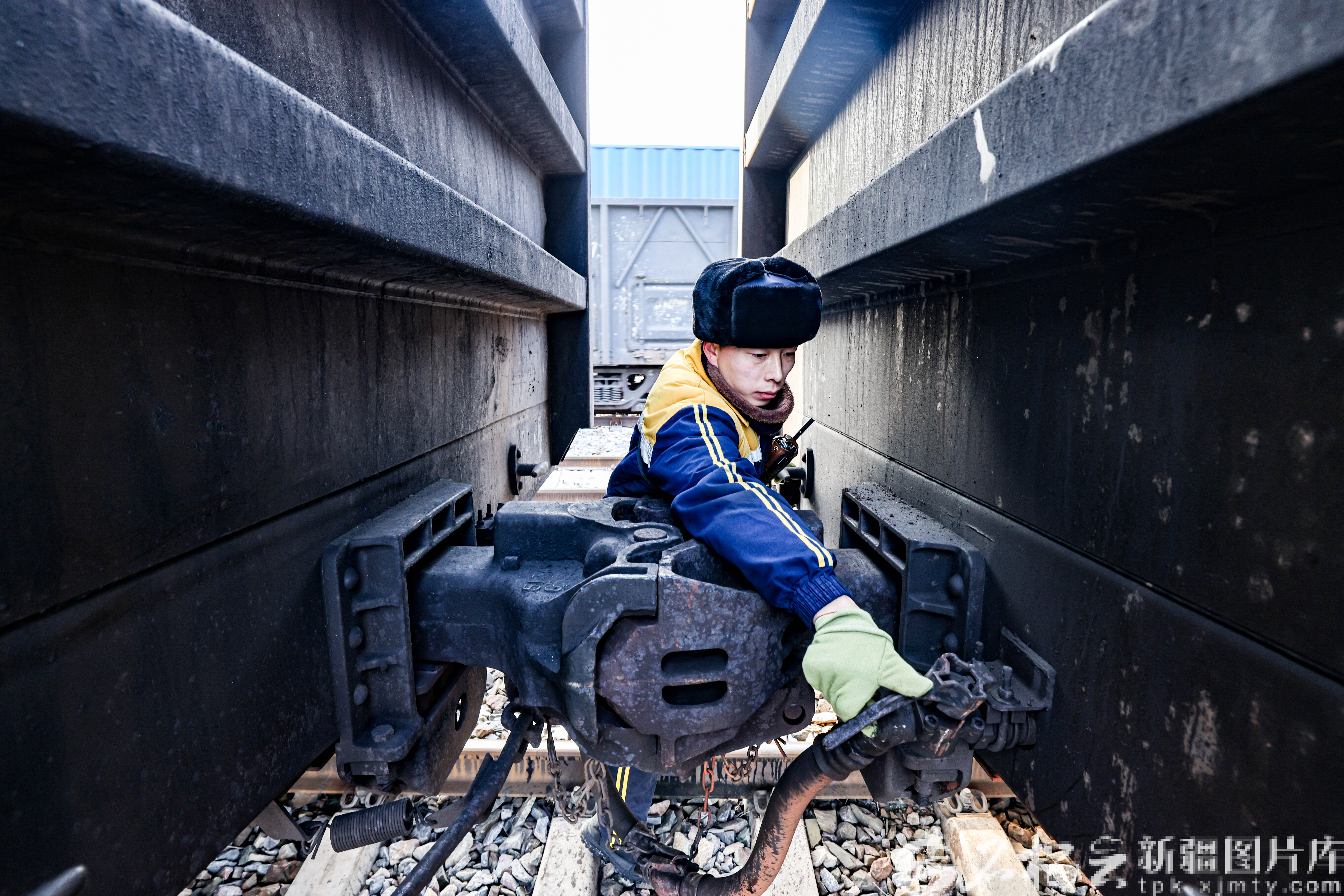 接着,宋震蜷着身子,钻进两节车厢之间的缝隙里,开始摘解连接车厢的软管。谢恒帅则在股道旁核对车号。