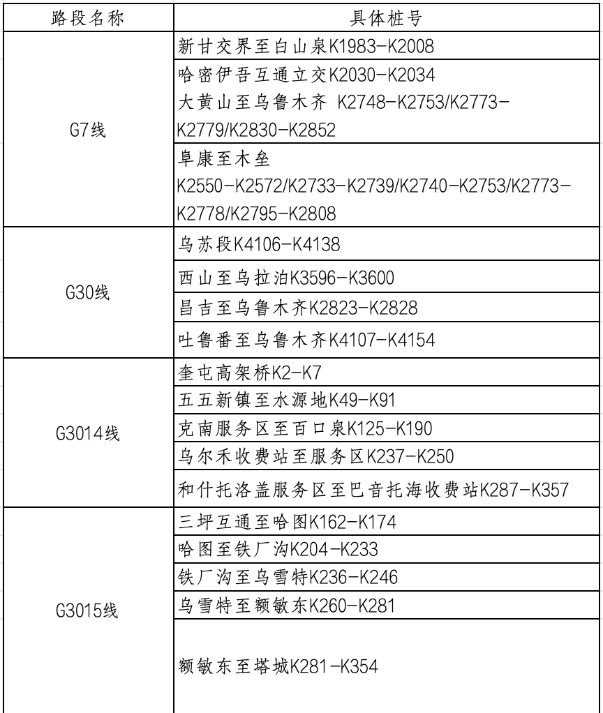 G30线连霍高速乌鲁木齐至奎屯段、星星峡至吐鲁番段