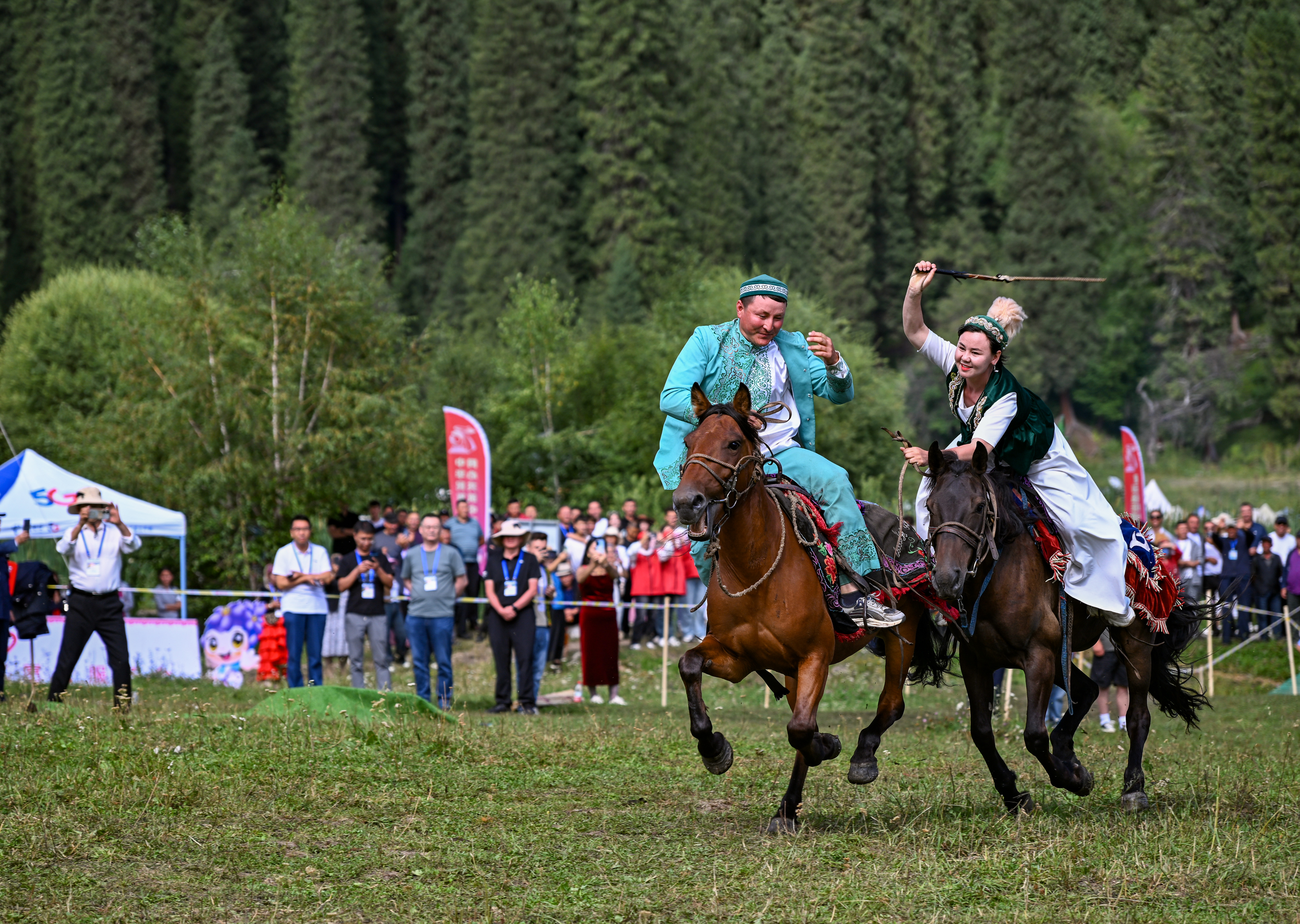 马背上的人们笑容洋溢