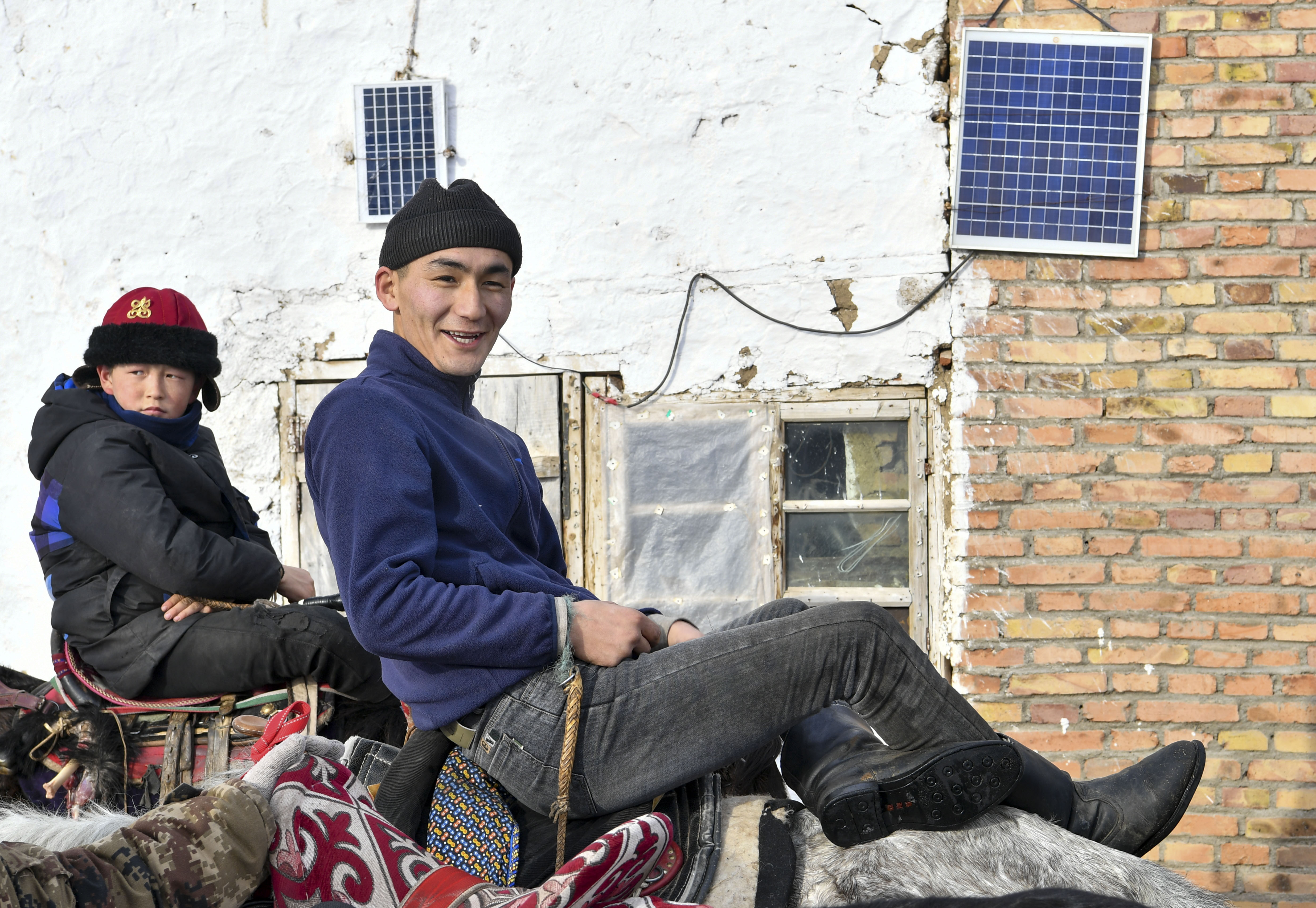 新疆巴尔鲁克山区的牧民坐在马背上享受午后阳光(2023年2月9日摄)。新华社记者 胡虎虎 摄