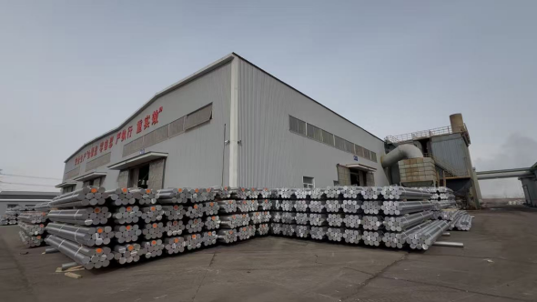 准东开发区天霖铝业制造有限公司满负荷生产的订单产品铝棒即将外运。宋良壁摄